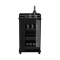Black Kitchen Cabinet, Bar Cart With Wheels, Glass Door, 3 Internal Shelves And 2 Side Shelves, Space To Store Coffee And Snacks. Black Particle Board Particle Board