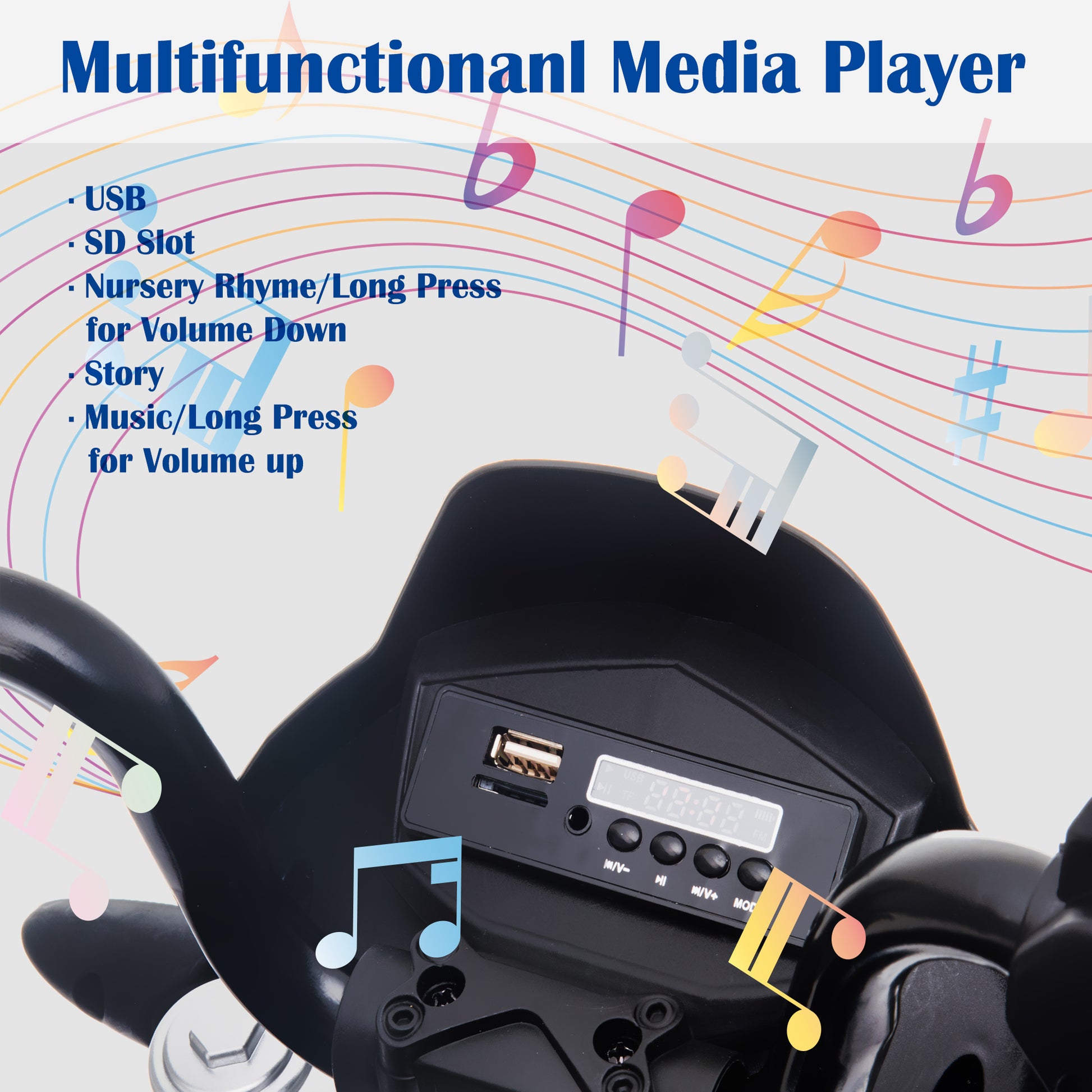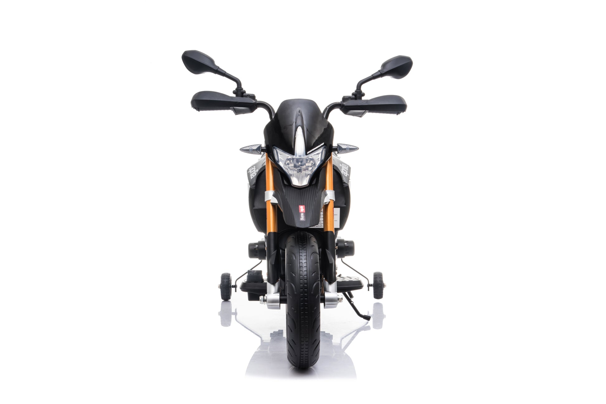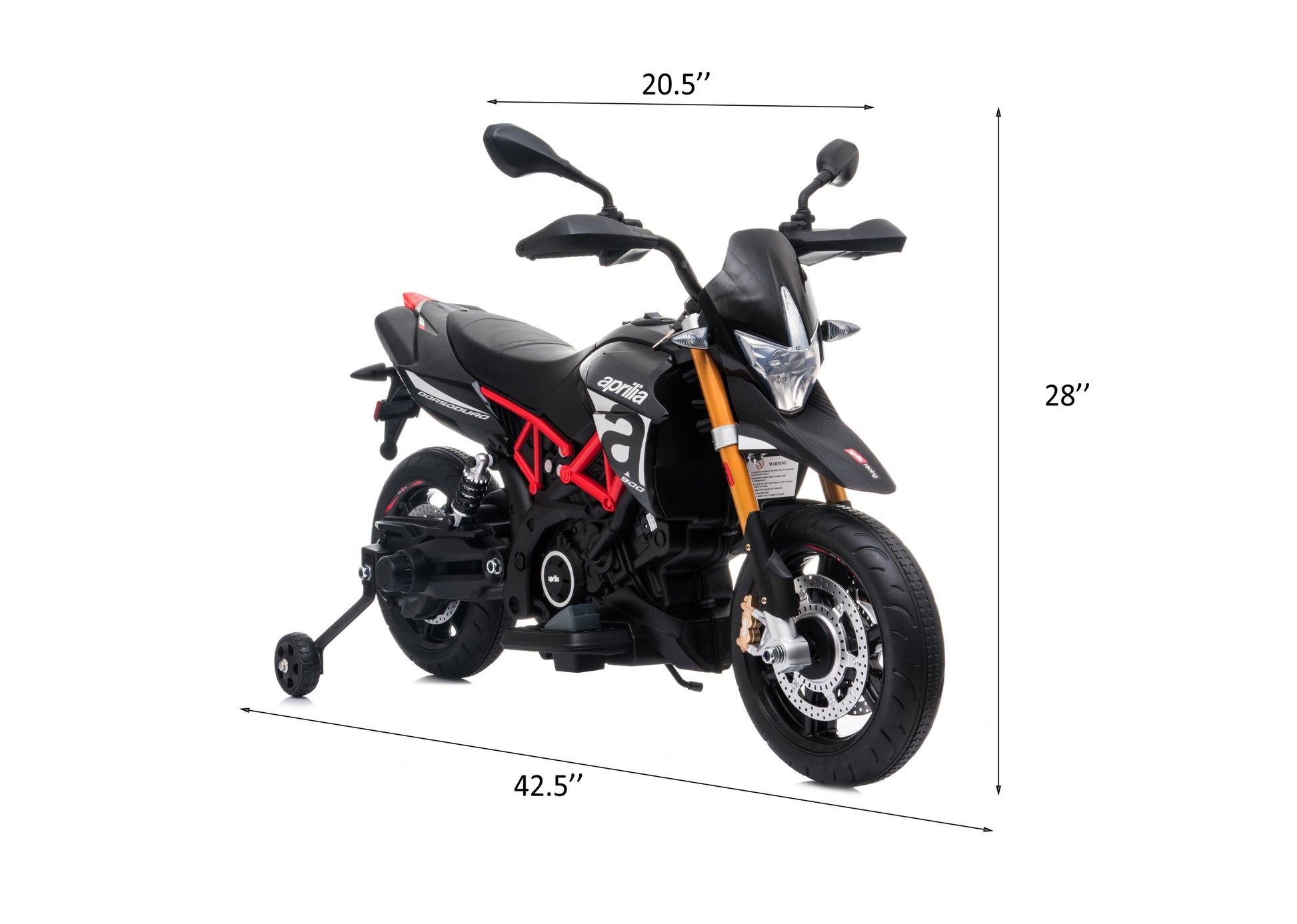 Black, Licensed Aprilia Electric Motorcycle, 12V Kids Motorcycle, Ride On Toy W Training Wheels, Spring Suspension, Led Lights, Sounds & Music, Mp3, Battery Powered Dirt Bike For Boys & Girls Black 50 99 Lbs Iron Plastic Iron Plastic Indoor & Outdoor Use