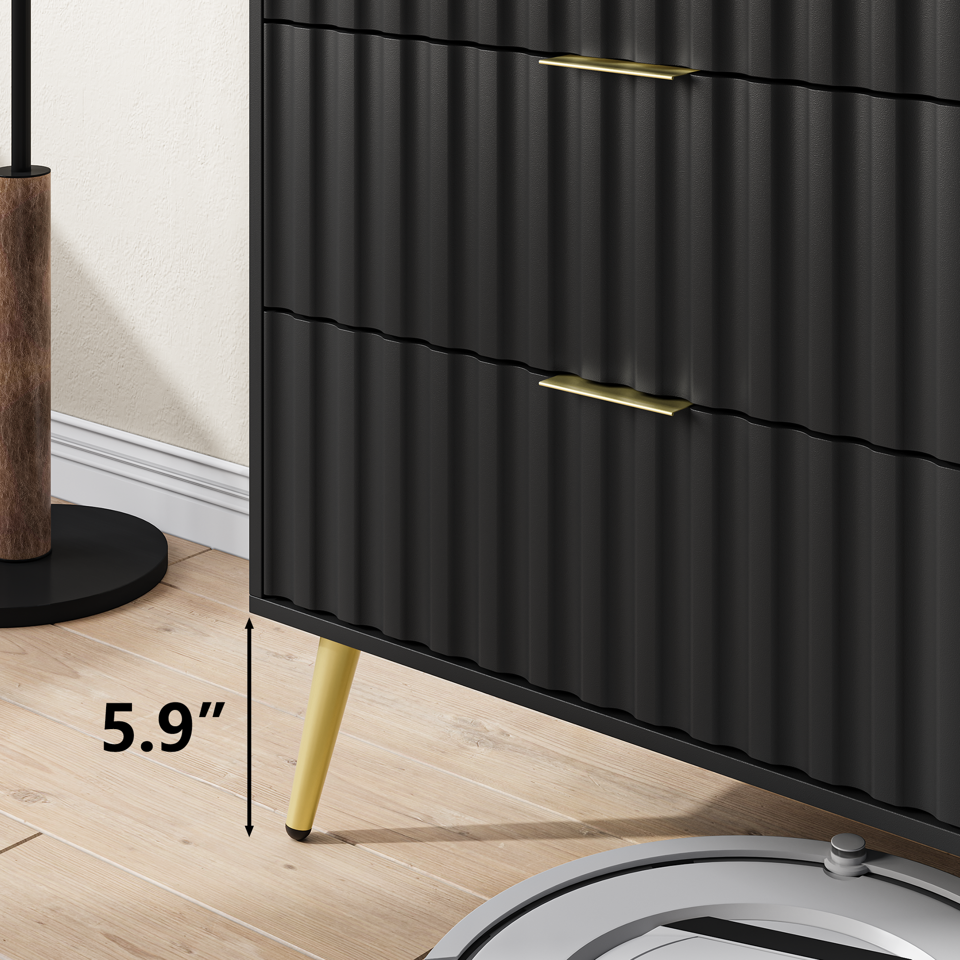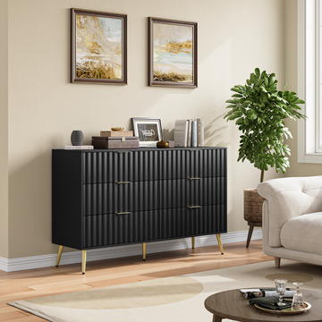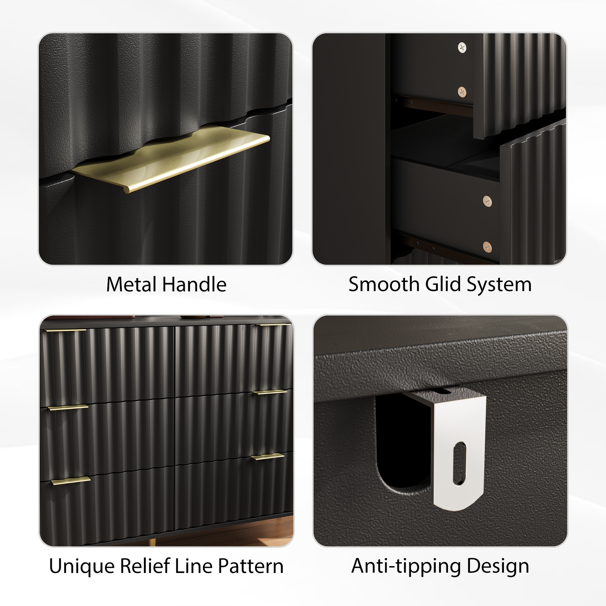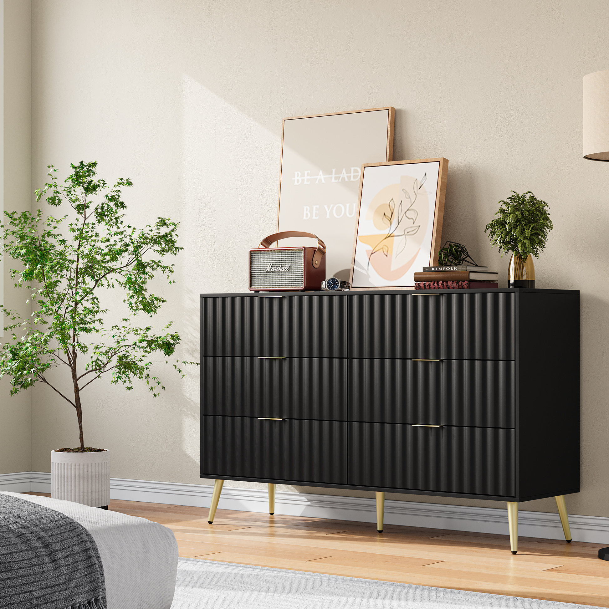 Black Modern 6 Drawers For Living Room For Hallway With Gold Handles Bedroom Chest Of Drawers Black Bedroom American Design,American Traditional,Antique,Classic,Modern Mdf
