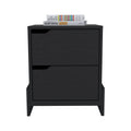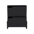 Black Modern Easy To Install Bedside Nightstand With 2 Drawers, With Openwork Gola Handles, With Floor Fixing With Two Sturdy Particle Board Legs. Black Particle Board Particle Board