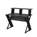 Black Music Desk With Keyboard Tray Black Keyboard Tray Computer Desk Office Freestanding Rectangular Shelves Wood Metal Sled