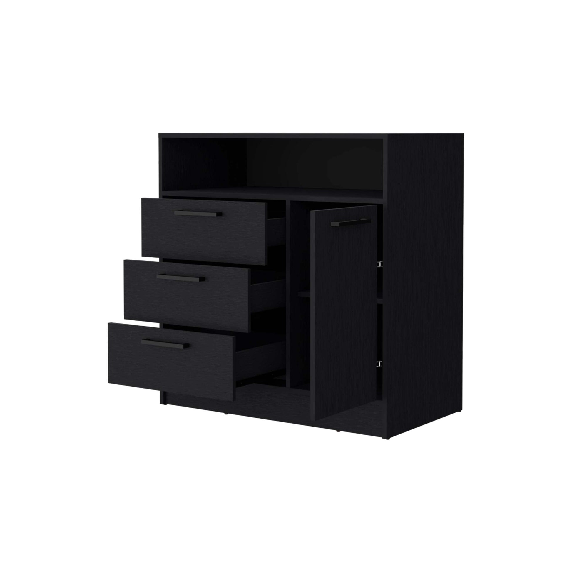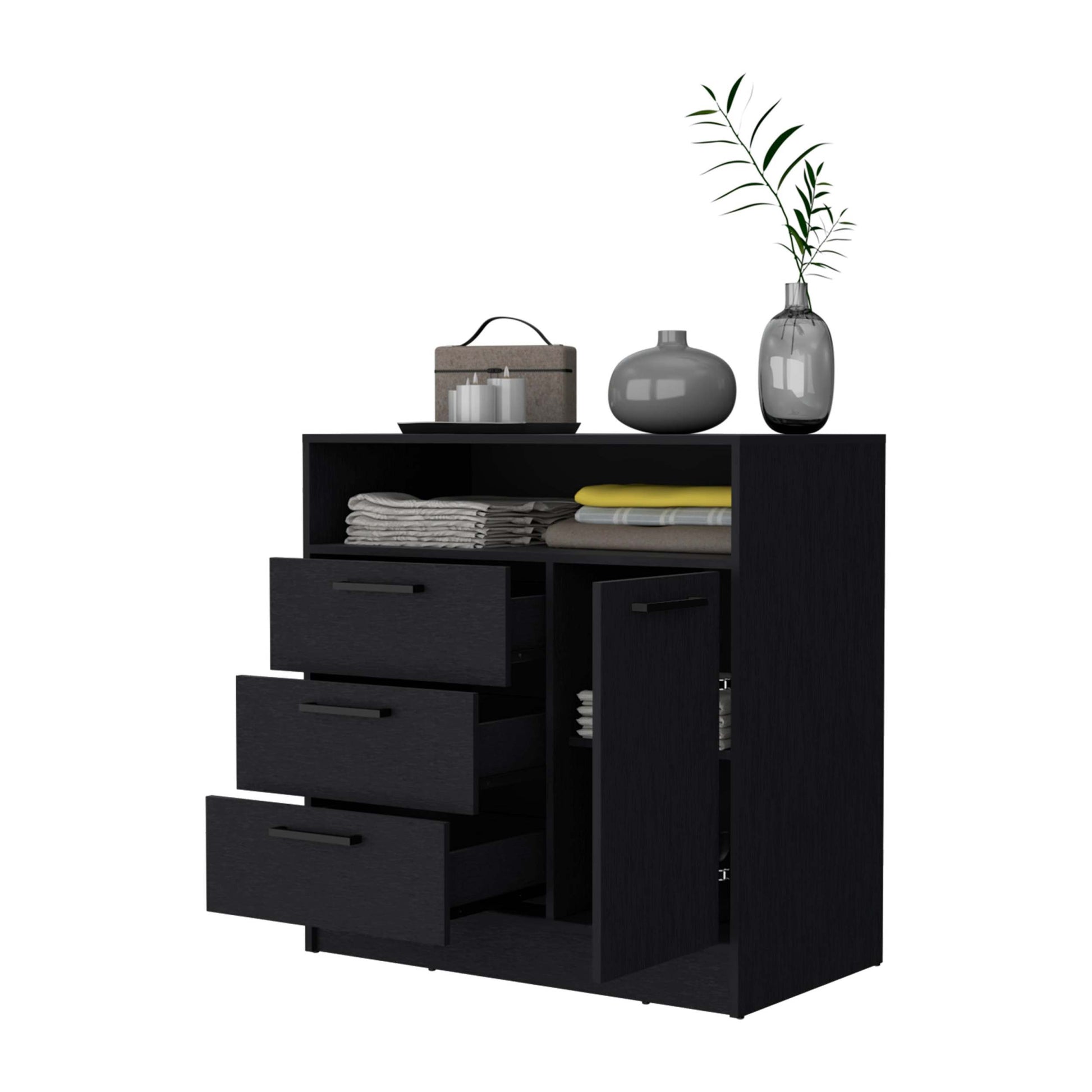 Black Open Storage Shelf 3 Drawer Dresser Black Bedroom Wood