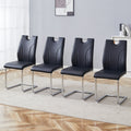 Black Pu Dining Chair Set.Uniquely Designed Black Dining Chairs. Pu Material, Paired With Silver Metal Chair Legs. Suitable For Offices, Restaurants, Kitchens, Conference Rooms, Etc. Set Of 4 Black