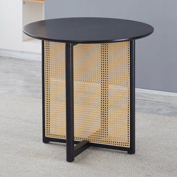 Black Solid Wood Round Table, All Solid Wood And Rattan Workman, Seats 2 4 People, Diameter 31.5 Inches Black Rubber Wood