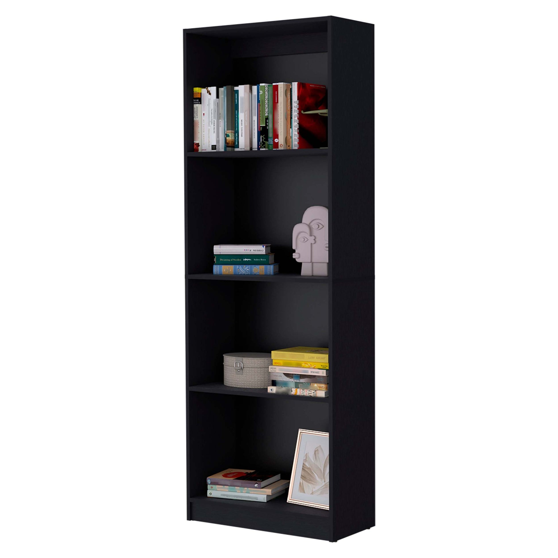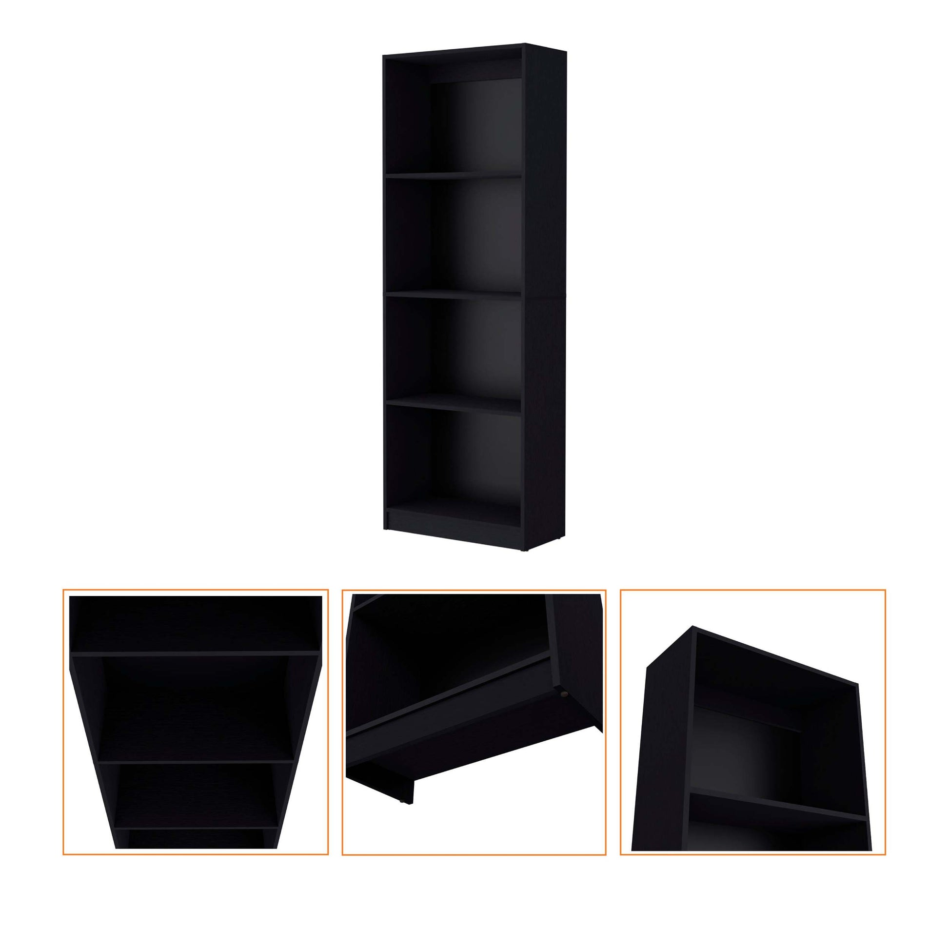 Black Tier Storage Shelves Bookcase 4 Black Standard Horizontal Primary Living Space Closed Back Wood Wood