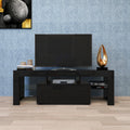 Black Tv Stand With Led Rgb Lights,Flat Screen Tv Cabinet, Gaming Consoles In Lounge Room, Living Room And Bedroom Black Black 50 59 Inches Mdf