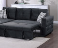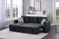 Black Velvet Convertible Sectional Sofa Pull Out Bed Couch Storage Chaise Tufted Reversible 2Pc Sectional Living Room Black Primary Living Space Tufted Back Contemporary,Modern L Shaped Square Arms Velvet 4 Seat