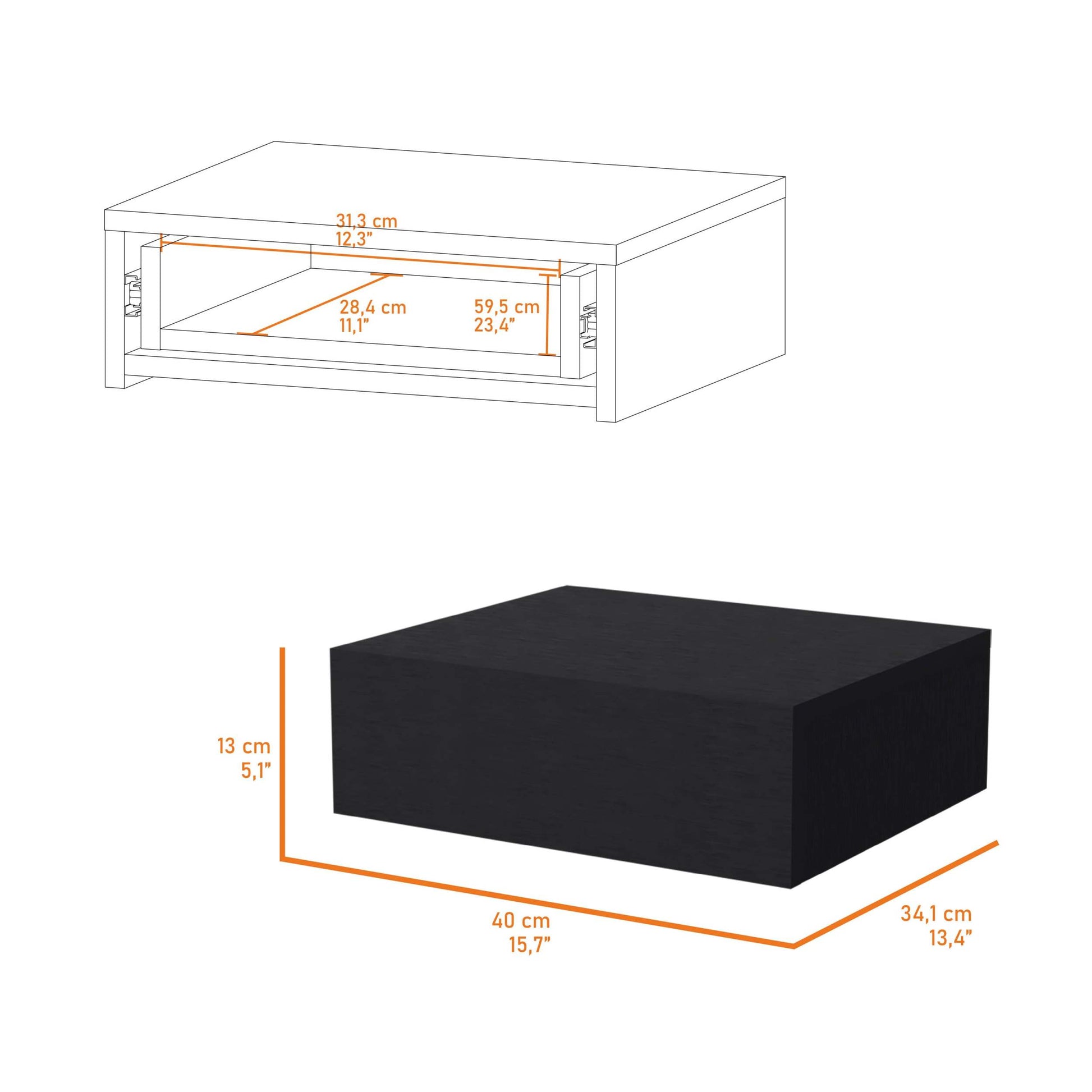 Black Wall Mounted Floating Nightstand Black 1 Drawer Bedroom Floating Space Saving Black Wood
