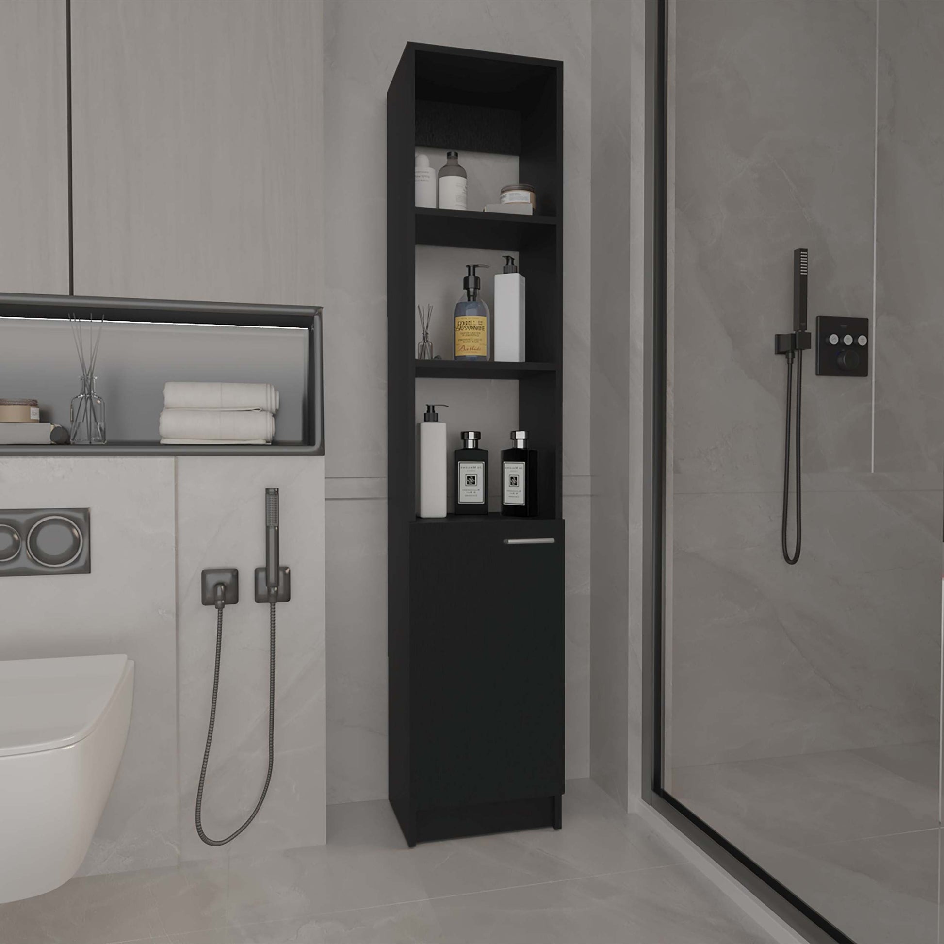 Black Wengue 2 Shelf Rectangle Linen Cabinet Black Particle Board