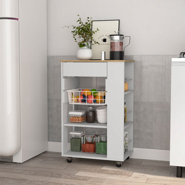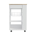Blosson Kitchen Cart, One Drawer, Two Open Shelves, Four Casters White Light Oak Multicolor Kitchen Modern Rectangular Stationary Kitchen Islands Particle Board Particle Board