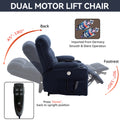 Blue Dual Motor Infinite Position Up To 350 Lbs Chenille Power Lift Recliner Chair, Heavy Duty Motion Mechanism With 8 Point Vibration Massage And Lumbar Heating, Dual Cup Holders White Metal