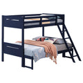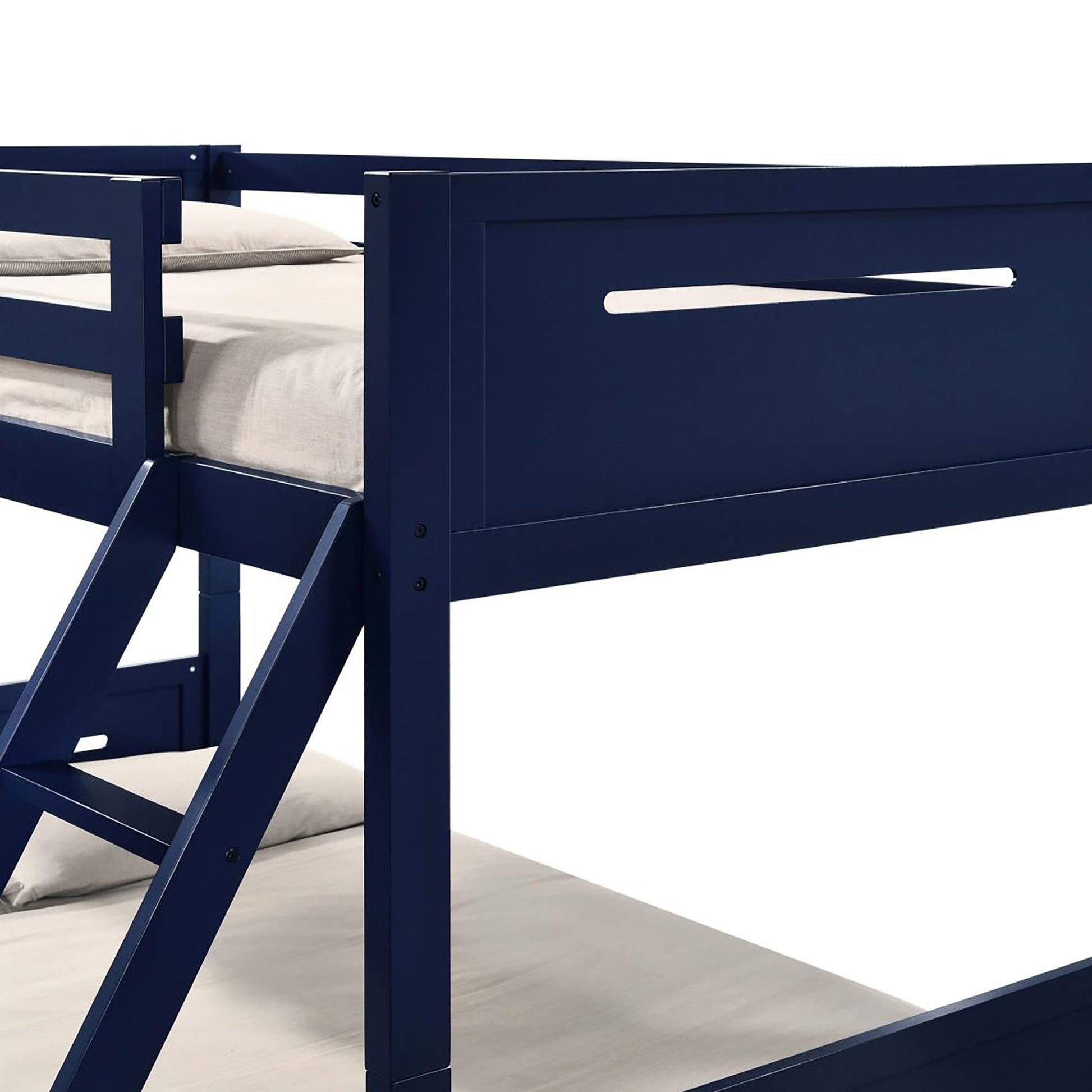 Blue Twin Full Bunk Bed With Built In Ladder Blue Bedroom Transitional Rubberwood Wood