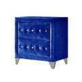 Blue Upholstered 2 Drawer Nightstand Blue 2 Drawers Bedroom Bedside Cabinet Luxury Drawers Velvet