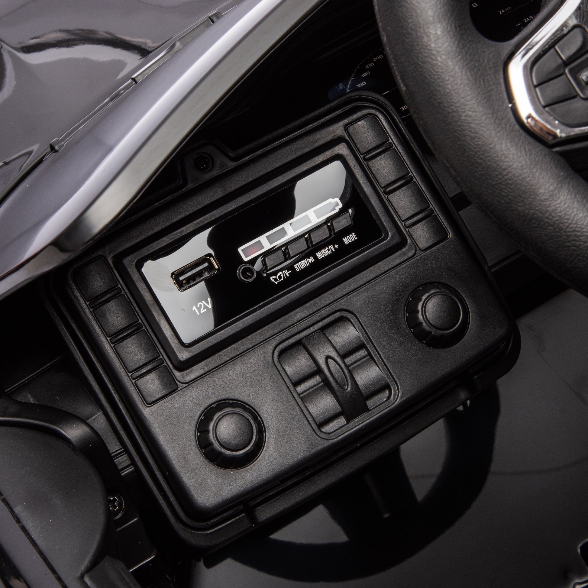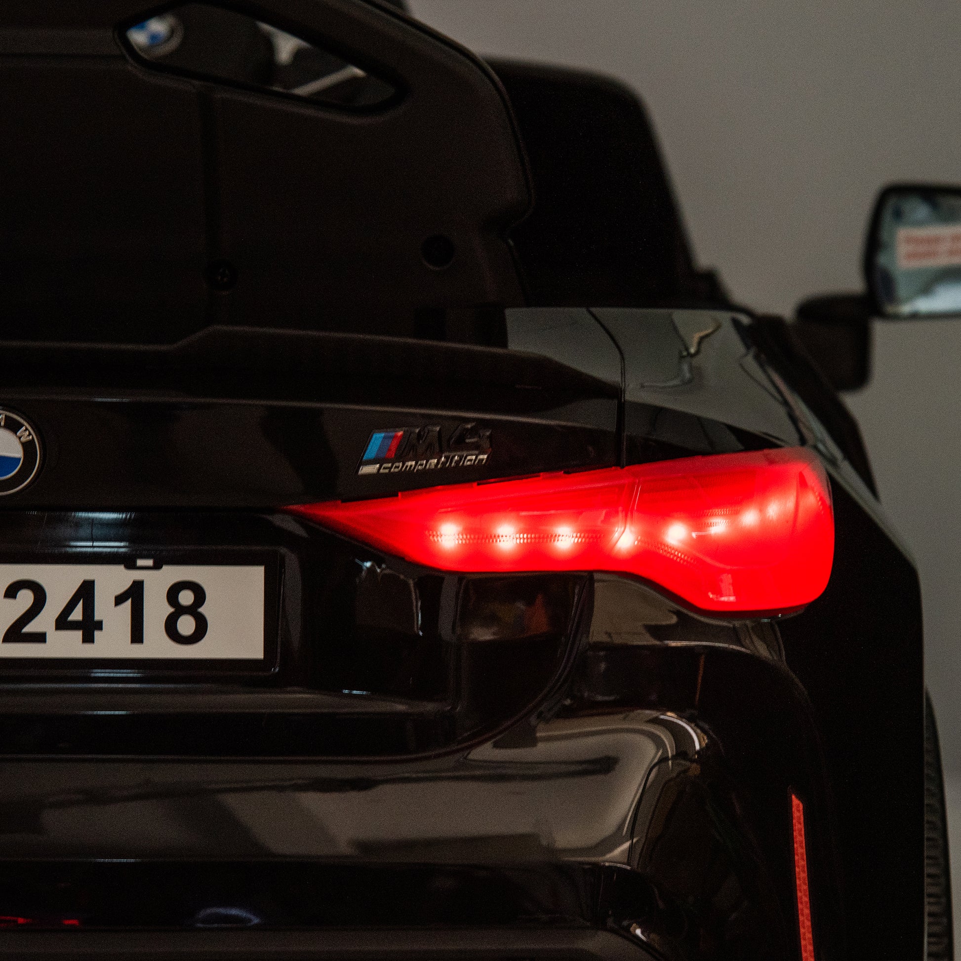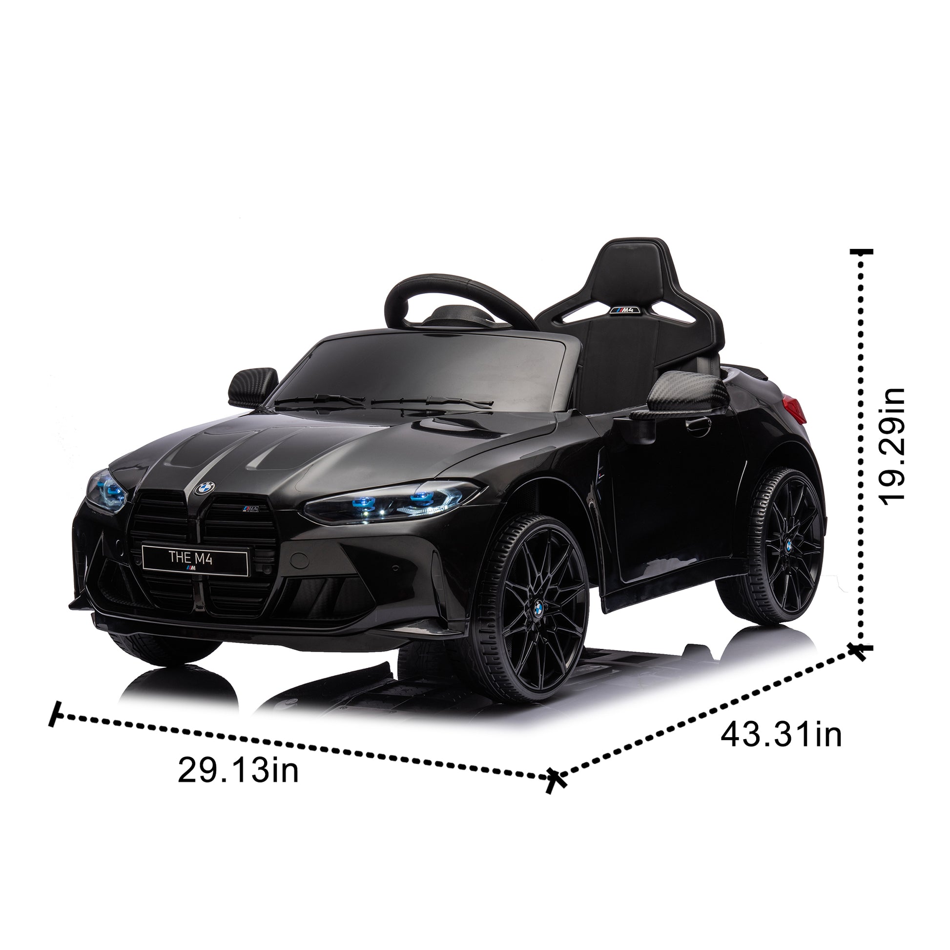 Bmw M4 12V Kids Ride On Toy Car 2.4G W Parents Remote Control,Three Speed Adjustable,Power Display, Usb,Mp3 ,Bluetooth,Led Light,Story,A Handle With Wheels And A Pull, Easy To Carry Black