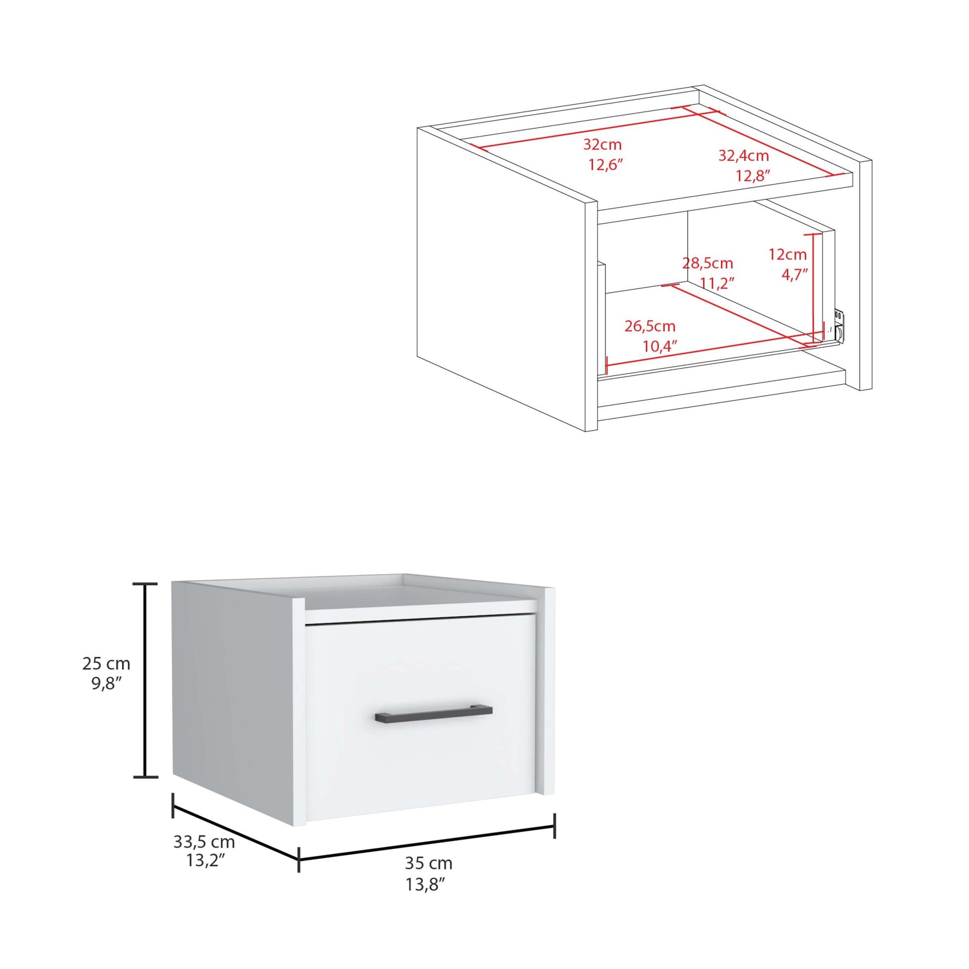 Name: Boa Floating Nightstand , End Table, Side Table Wall-Mounted Single Drawer Design with Handle- White - Bedroom