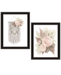 "Bohemian Macrame & Floral Arrangement" Framed Wall Art For Living Room, Wall Art Print For Home Decor, Bedroom Wall Art By House Fenway Multicolor Wood Paper