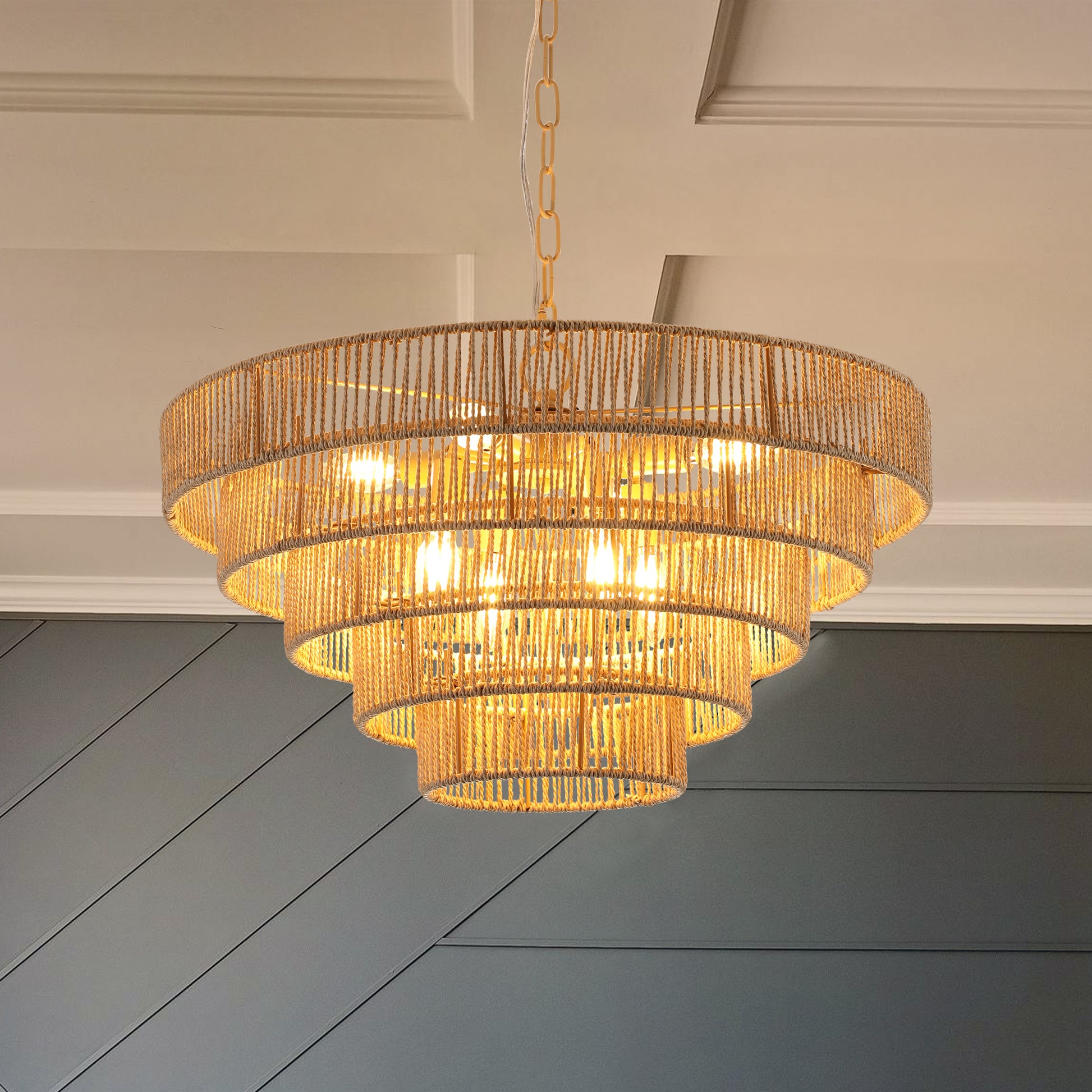 Bohemian Style Woven Pendant Light 23.6 Inch Rattan Ligh Large Rattan Pendant Light With 5 Tier Rattan Chandelier Wood Wood Farmhouse Iron