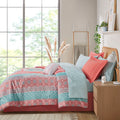 Boho Comforter Set With Bed Sheets Full Coral Polyester
