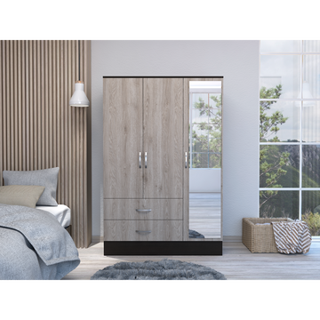 Bolton 120 Mirrored Armoire, Metal Hardware, Double Door Cabinet, Two Drawers, Single Door With Mirror, Rods Multicolor Multicolor Bedroom Particle Board