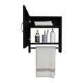 Botiq 19.7" H X 17.7" W Mirror Medicine Cabinet With Towel Rack White, One Door With Two Interior Shelves For Bathroom, Kitchen Black Black Particle Board