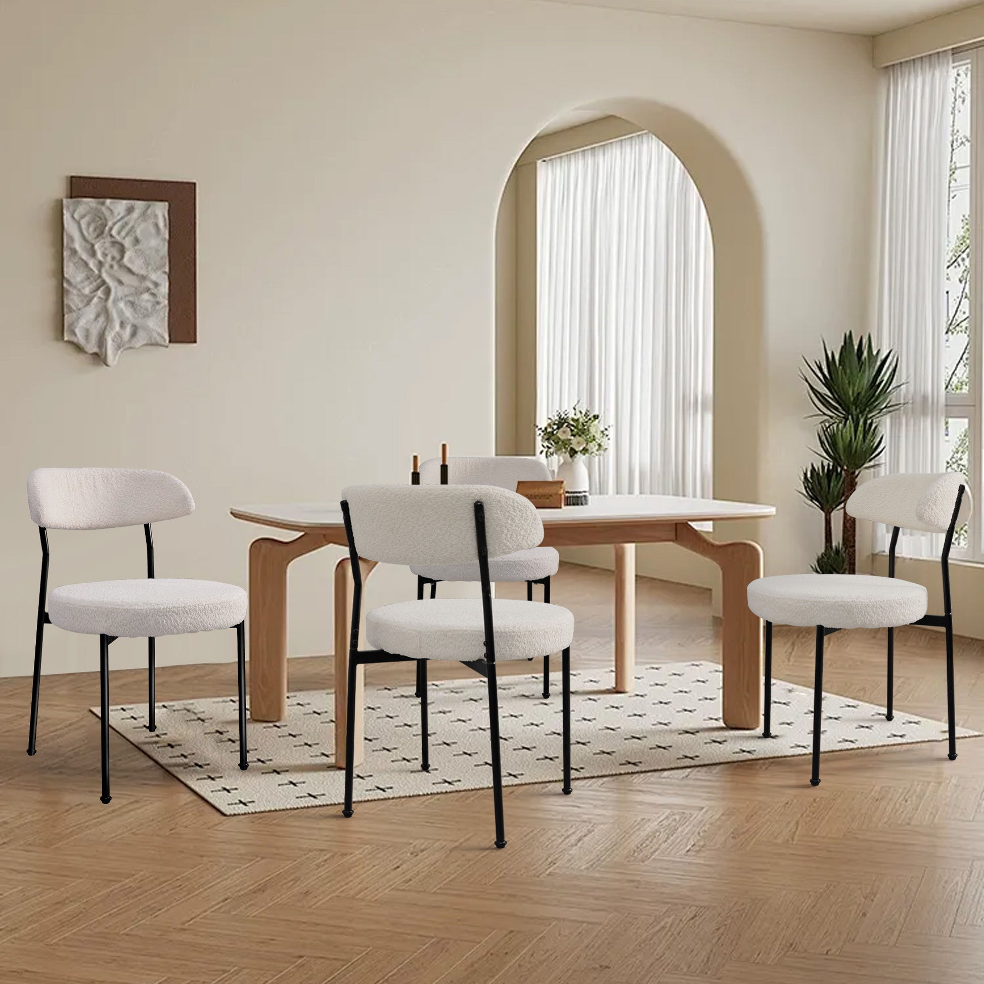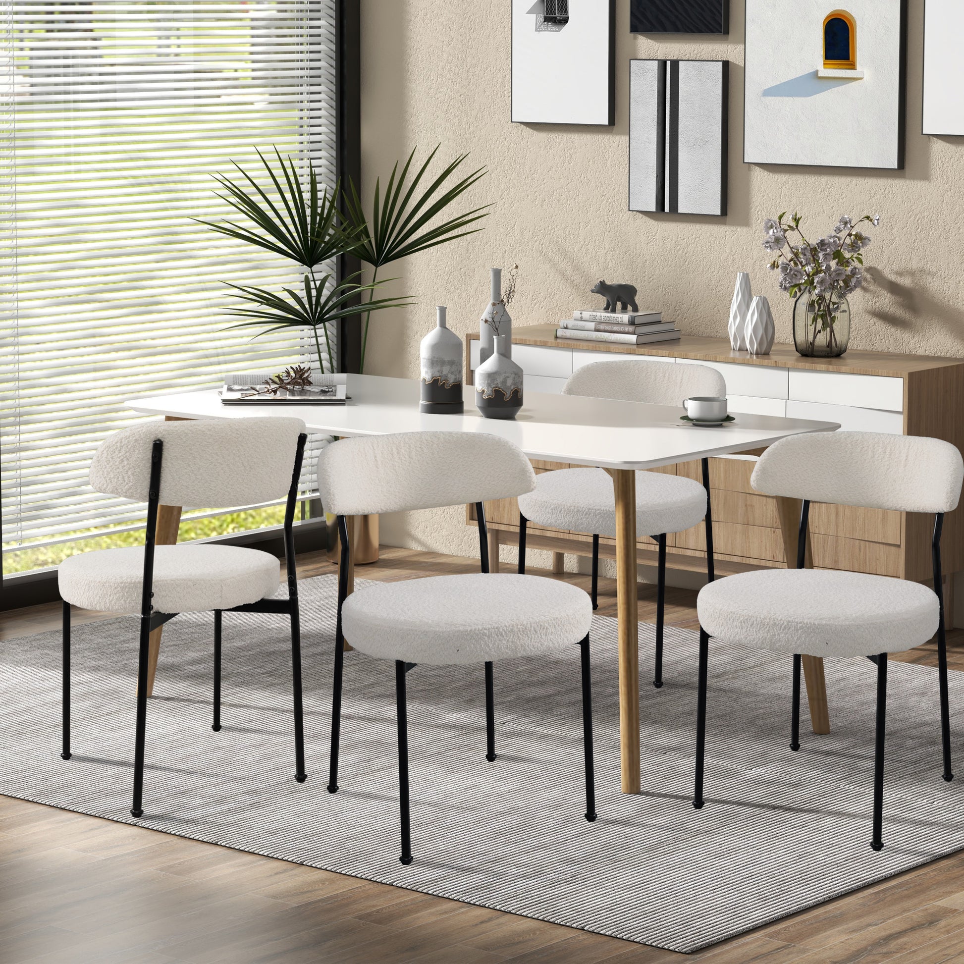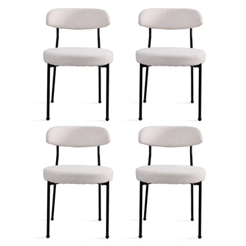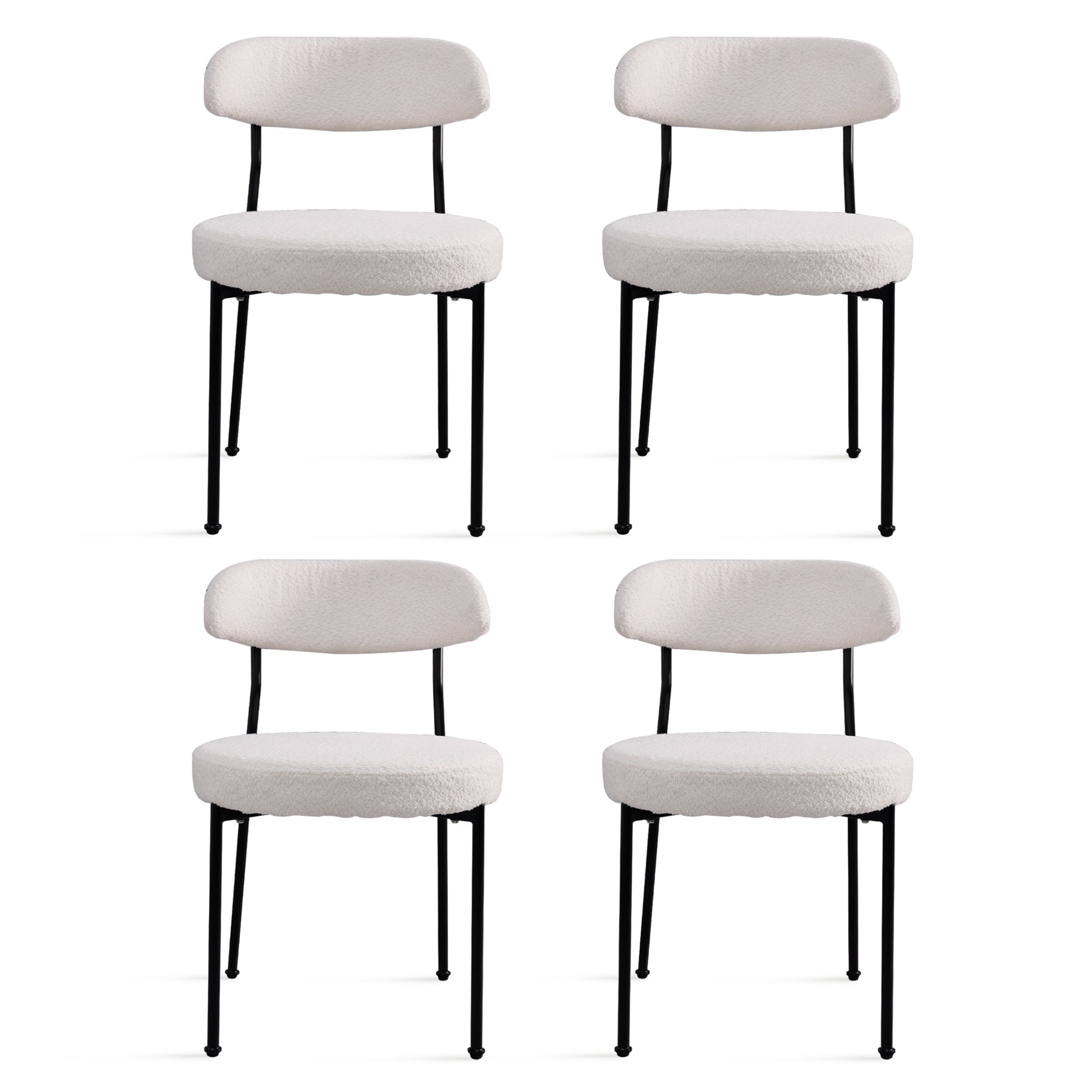 Boucle Upholstered Dining Chairs With Curved Backrest & Metal Legs Set Of 4, Beige Metal Beige Black Dining Room Foam Classic,Modern Set Of 4 Or More Fabric Metal