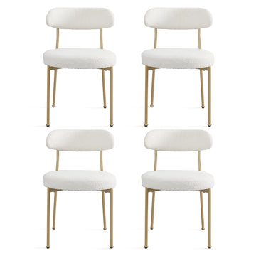 Boucle Upholstered Dining Chairs With Curved Backrest & Gold Metal Legs Set Of 4, Beige Metal Beige Gold Dining Room Foam Classic,Modern Dining Chairs Set Of 4 Or More Fabric Metal