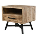 Bree 22 Inch Modern Rustic Single Drawer Nightstand, Brown Mango Wood Frame, Black Iron Angled Legs Brown Metal & Wood