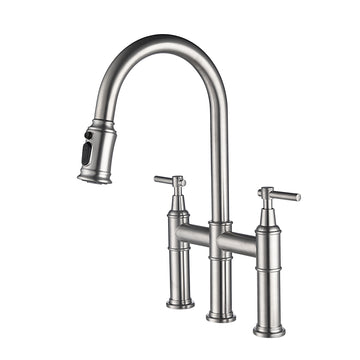 Bridge Kitchen Faucet With Pull Down Sprayhead In Spot Brushed Nickel Brass