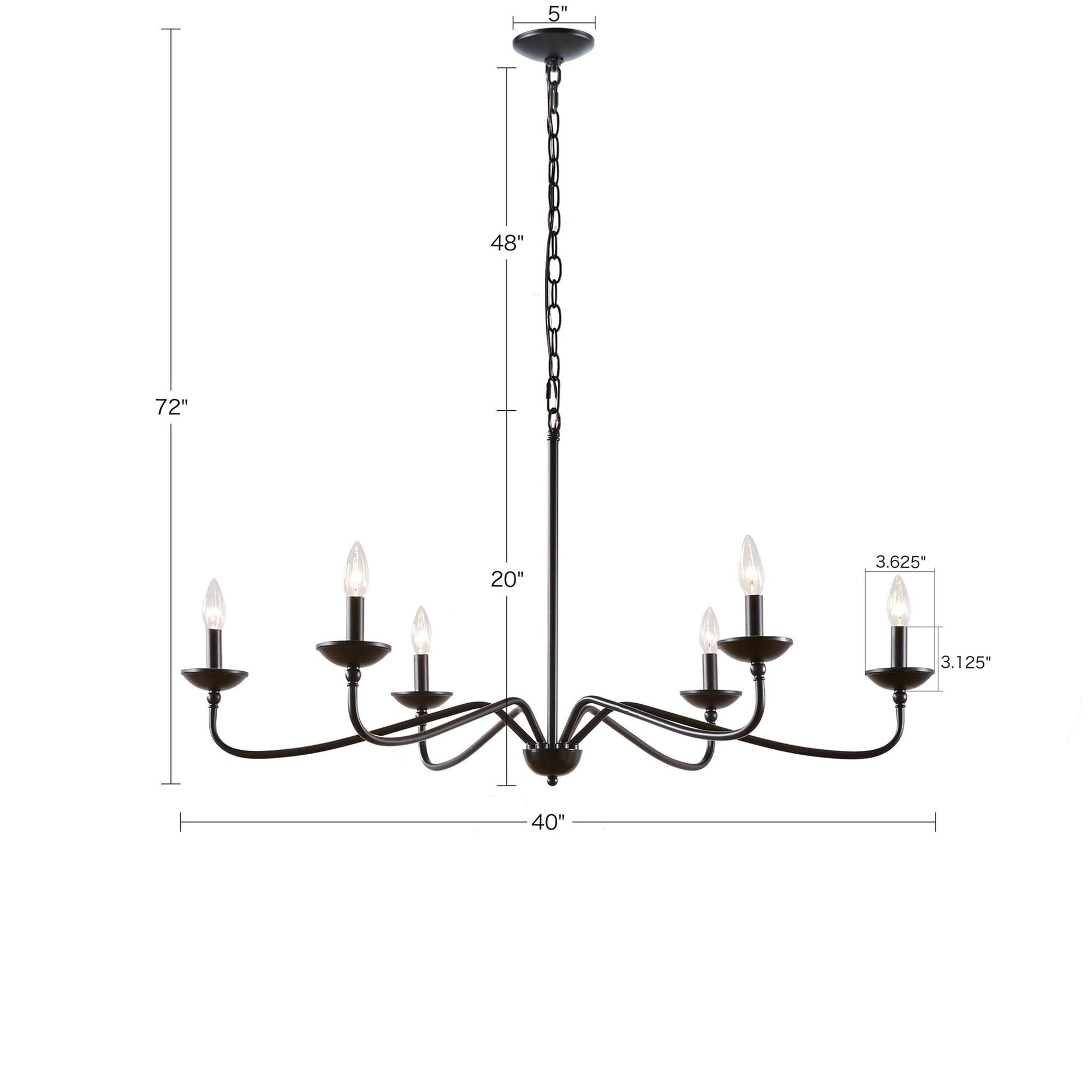 Brighton 6 Light Farmhouse Metal Chandelier Matte Black Cotton