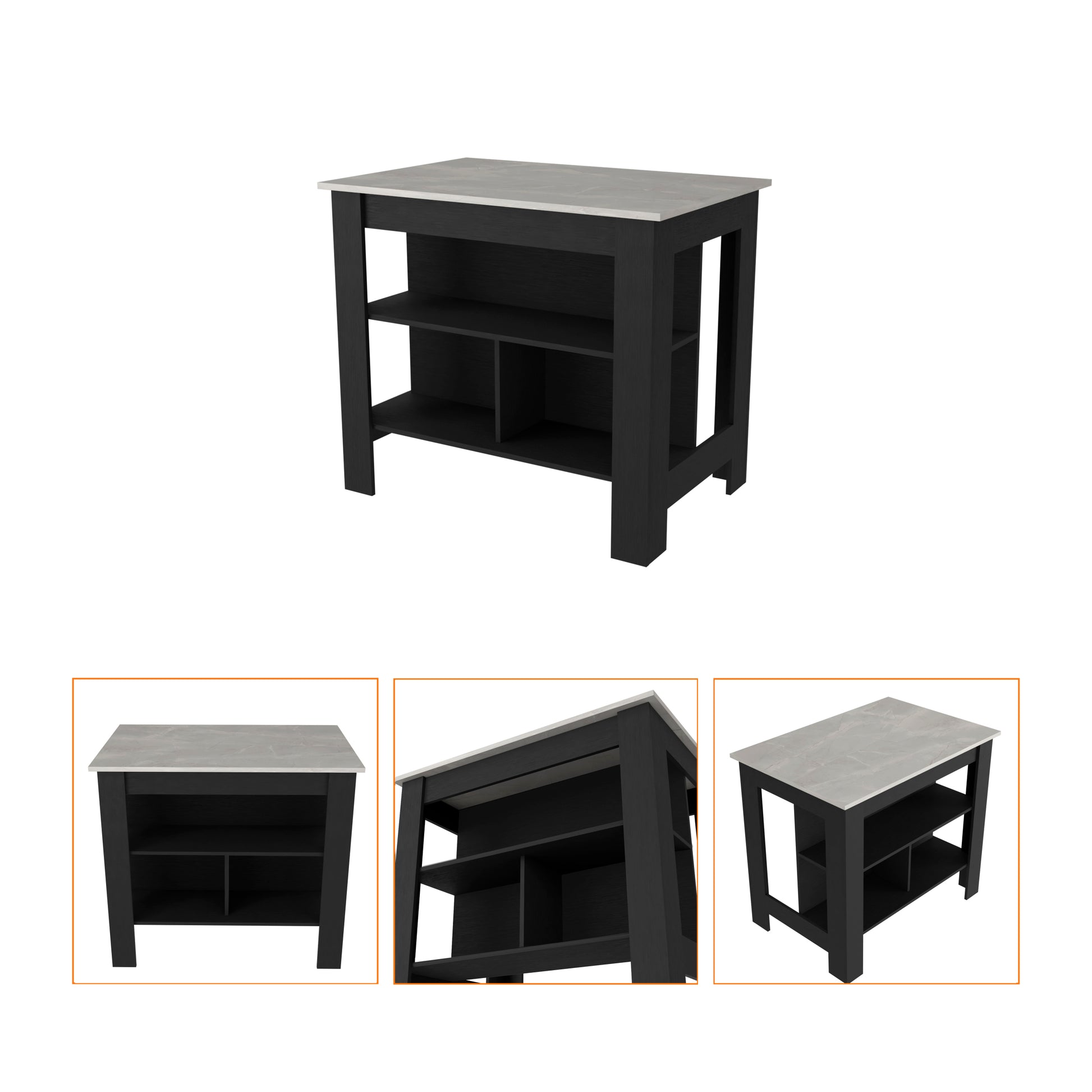 Brooklyn Kitchen Island, Three Concealed Shelves Multicolor Kitchen Contemporary,Modern Melamine Melamine