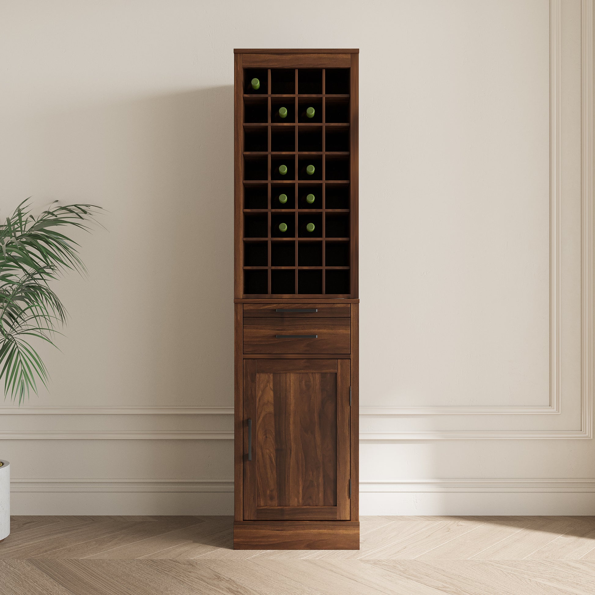Brown Walnut Color Modular Wine Bar Cabinet Buffet Cabinet With Hutch For Dining Room Walnut Brown Mdf
