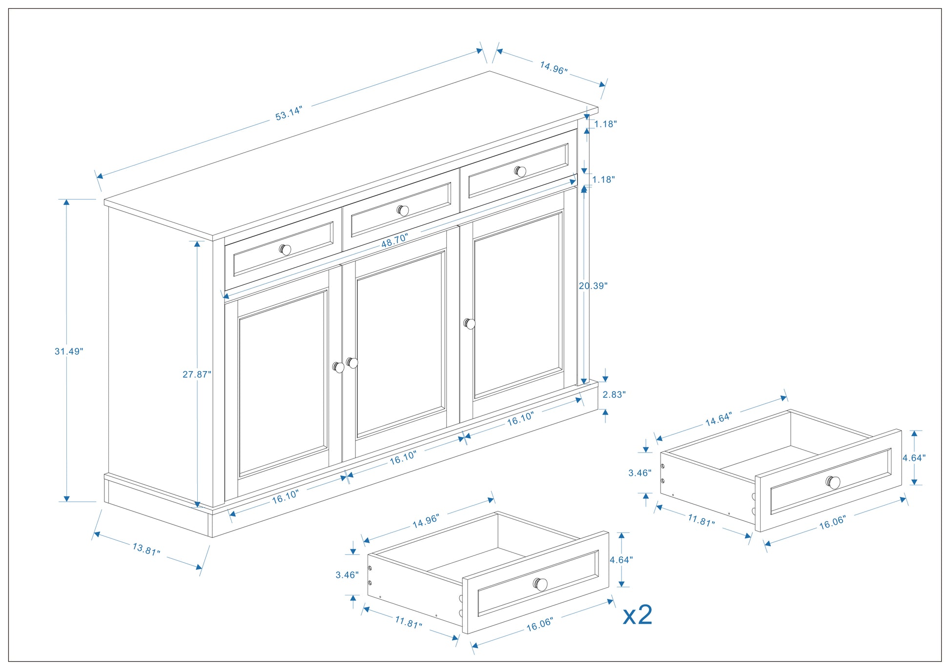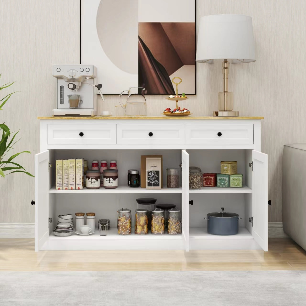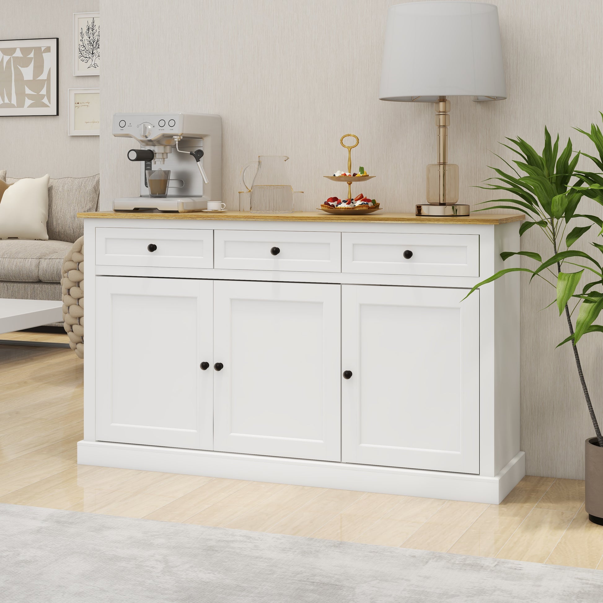 Buffet Cabinet Storage Sideboard Farmhouse Server Bar Wine Cabinet With 3 Drawers & 3 Doors Adjustable Shelves For Dining Living Room Kitchen Cupboard White White Mdf