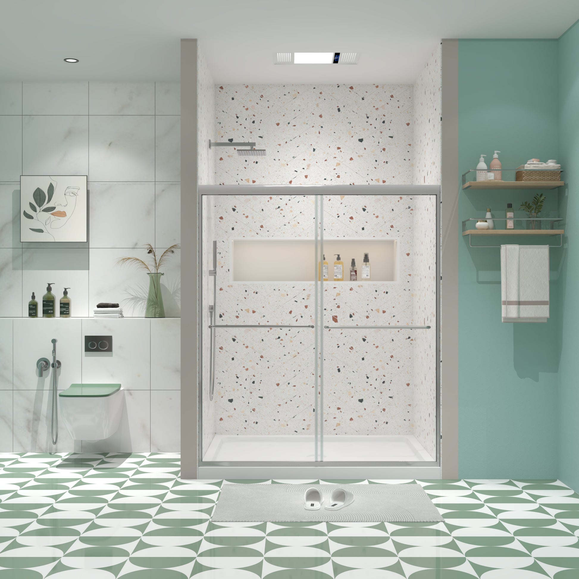 Bypass Shower Door, Sliding Door, With 1 4" Tempered Glass And Polished Finish 6070 Chrome Bathroom Aluminium Alloy