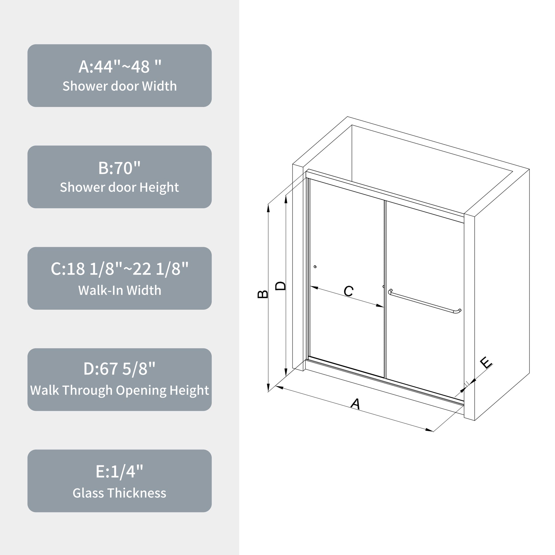 Bypass Shower Door, Sliding Door, With 1 4" Tempered Glass And Chromed Finish 4870 Chrome Bathroom Aluminium Alloy