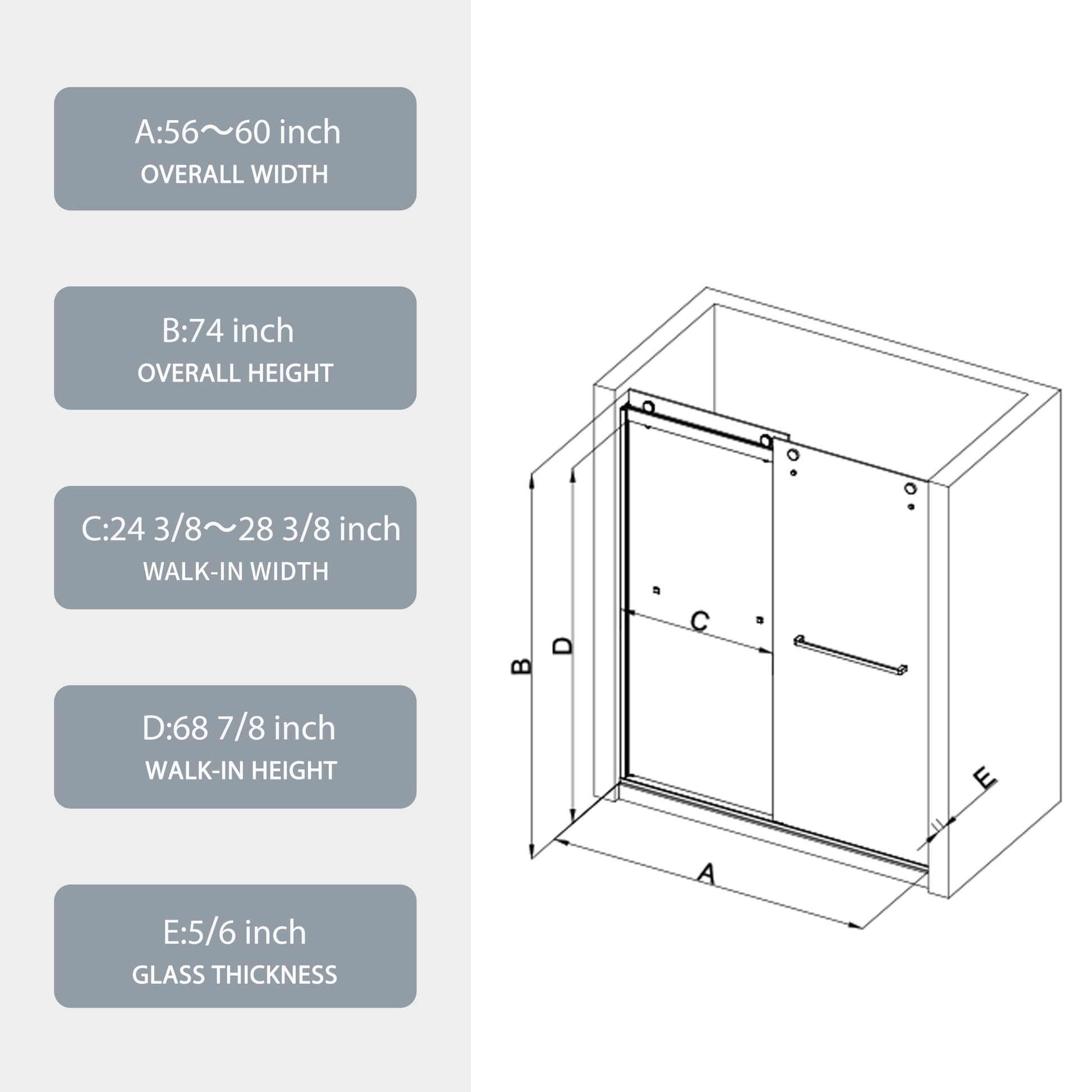 Bypass Shower Door, Sliding Door, With 5 16" Tempered Glass And Brushed Nickel Finish 6074 Brushed Nickel Bathroom Stainless Steel