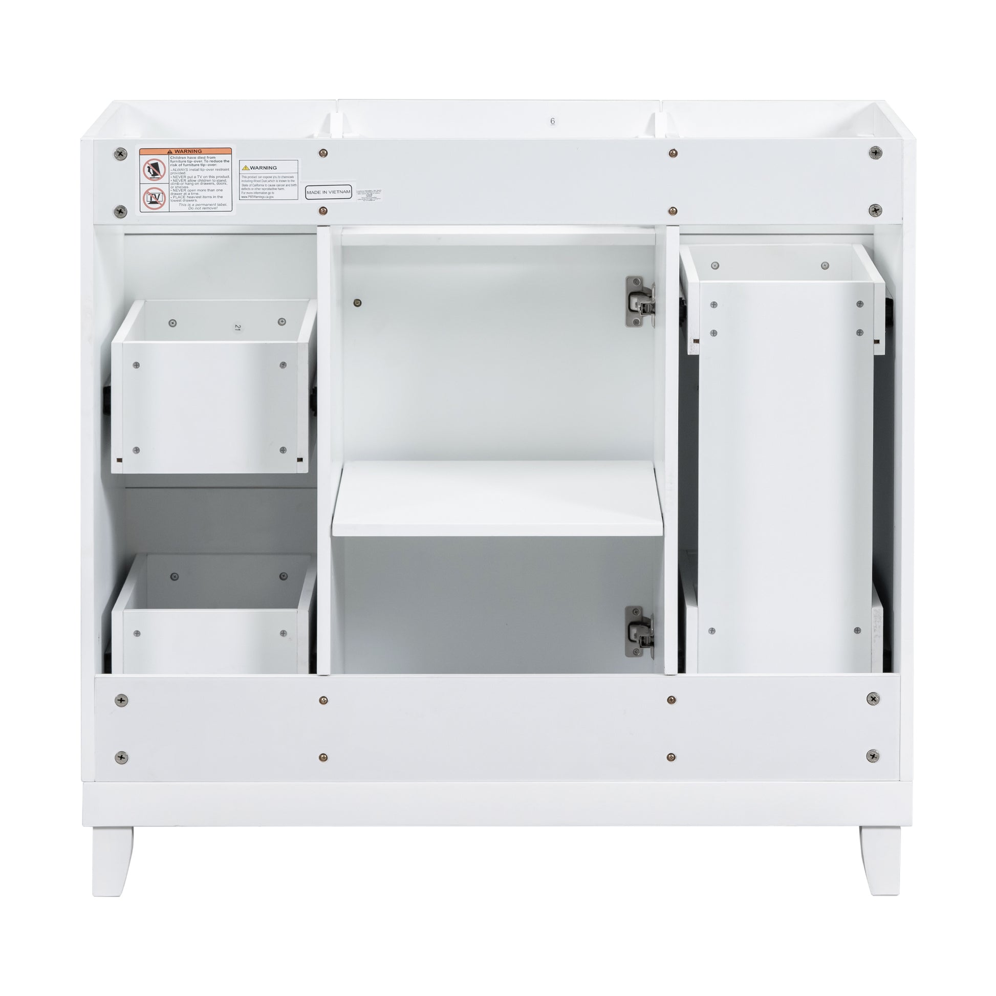Cabinet Only 36" White Bathroom Vanity Sink Not Included White Solid Wood Mdf Resin