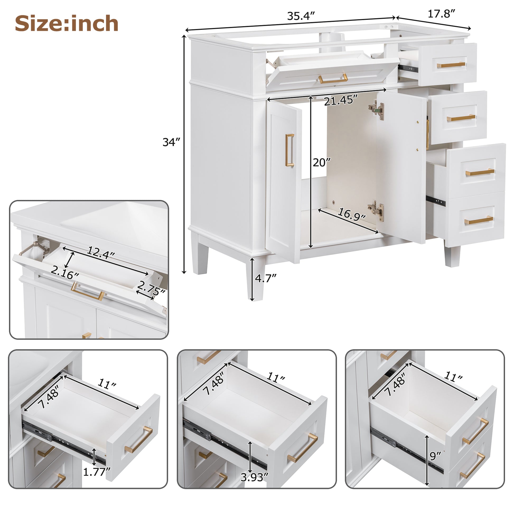 Cabinet Only 36" White Modern Bathroom Vanity Sink Not Included 4 White 2 Soft Close Doors Bathroom Freestanding Modern Solid Wood Mdf Painted
