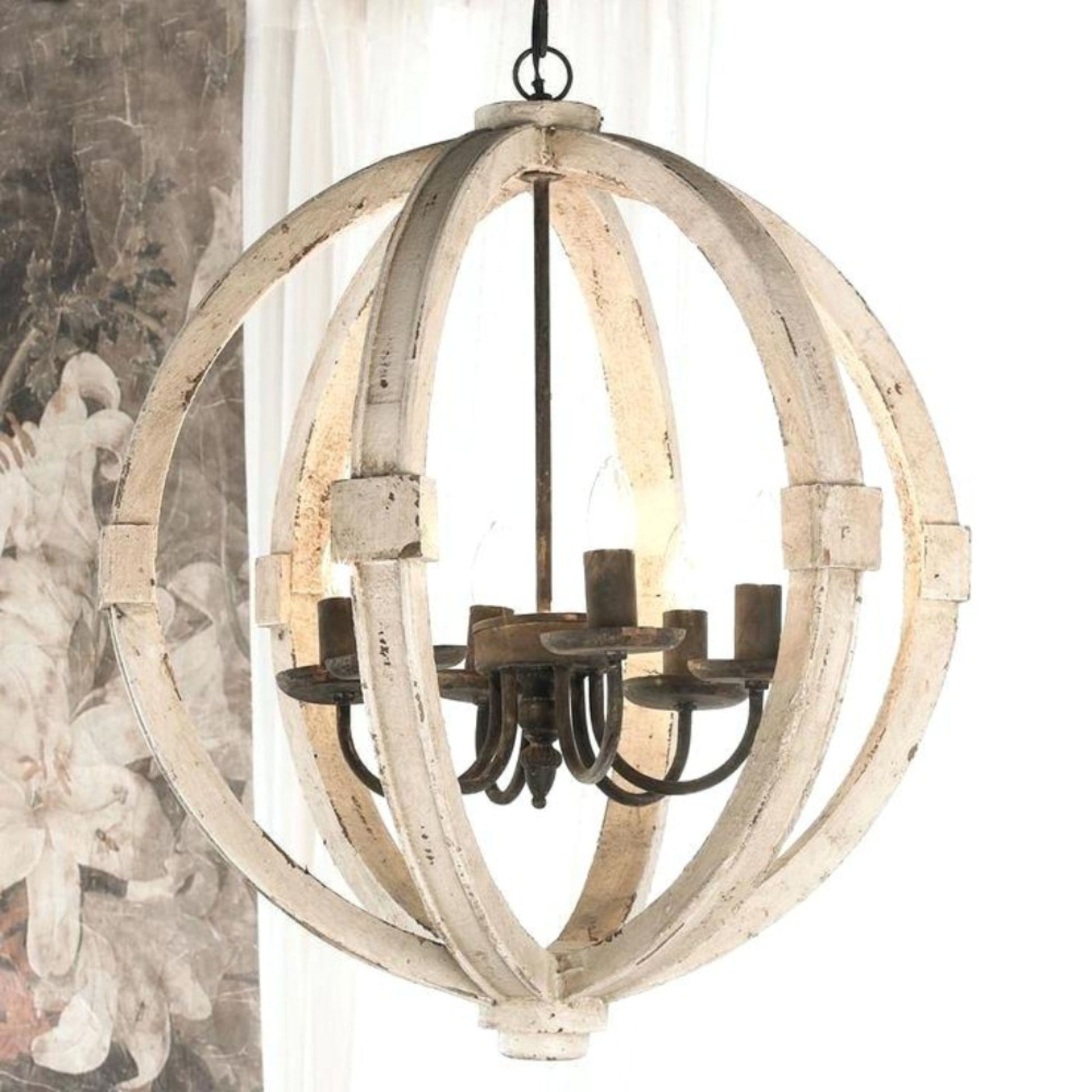 Calder Wooden Orb Shape Chandelier With Metal Chain And Six Bulb Holders, White White Metal & Wood