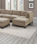 Camel Chenille Fabric Modular Sectional 9Pc Set Living Room Furniture Corner Sectional Couch 3X Corner Wedge 4X Armless Chairs And 2X Ottomans Tufted Back Exposed Wooden Base Camel Chenille Wood Primary Living Space Cushion Back Contemporary,Modern