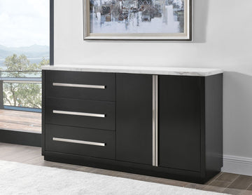 Camila White Marble Top Server Black Black Marble