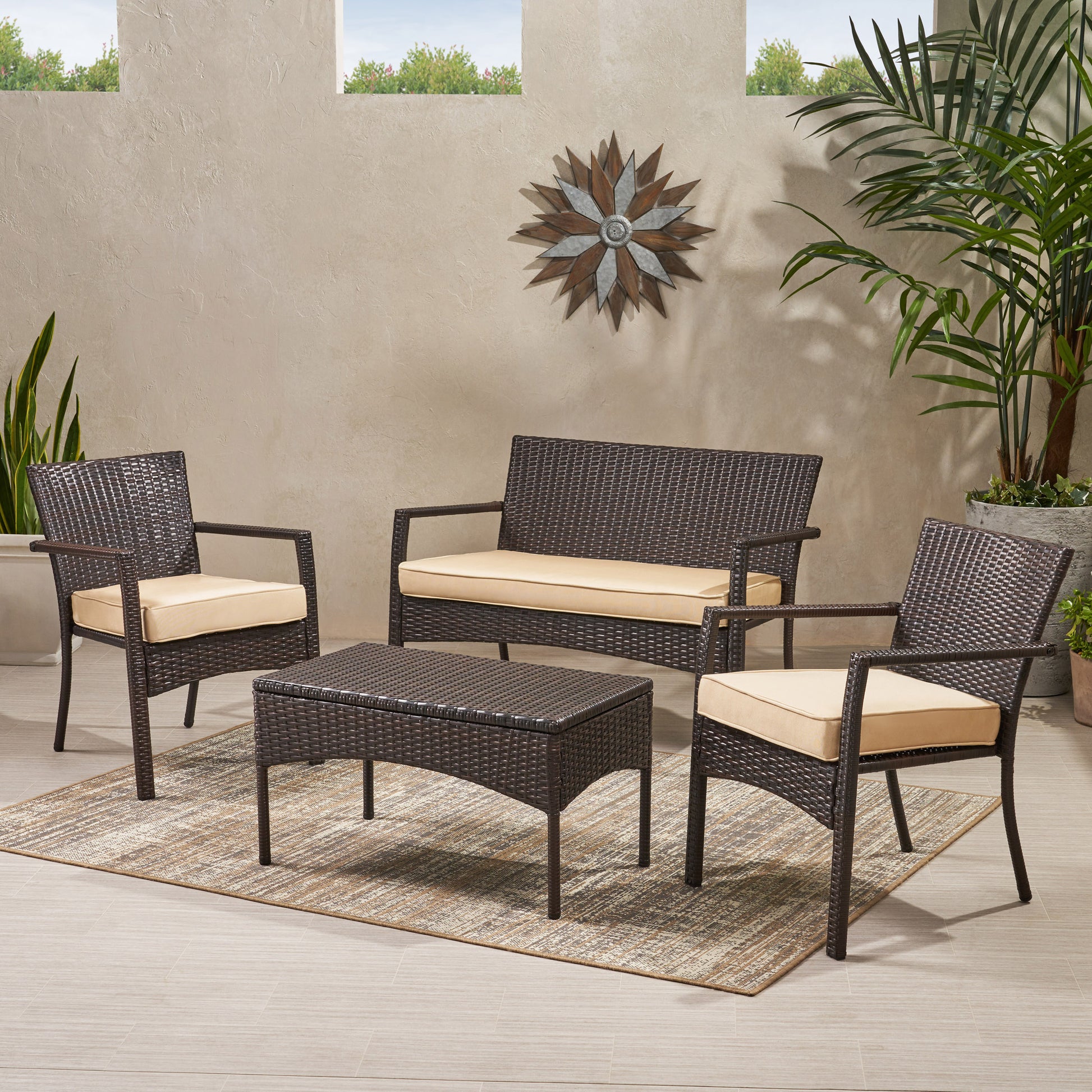 Cancun 4Pcs Chat Set Multi Pe Rattan Iron Waterproof Fabric