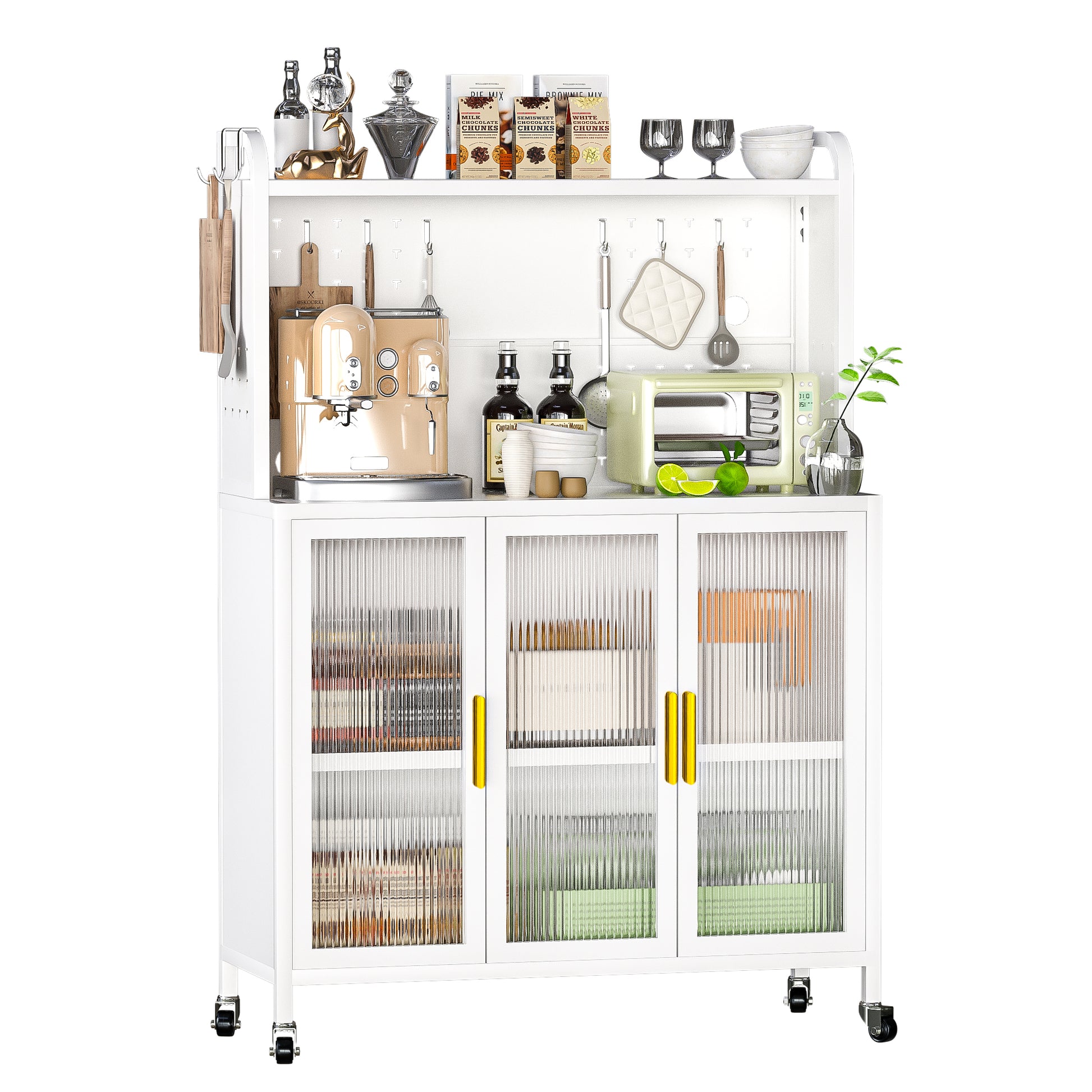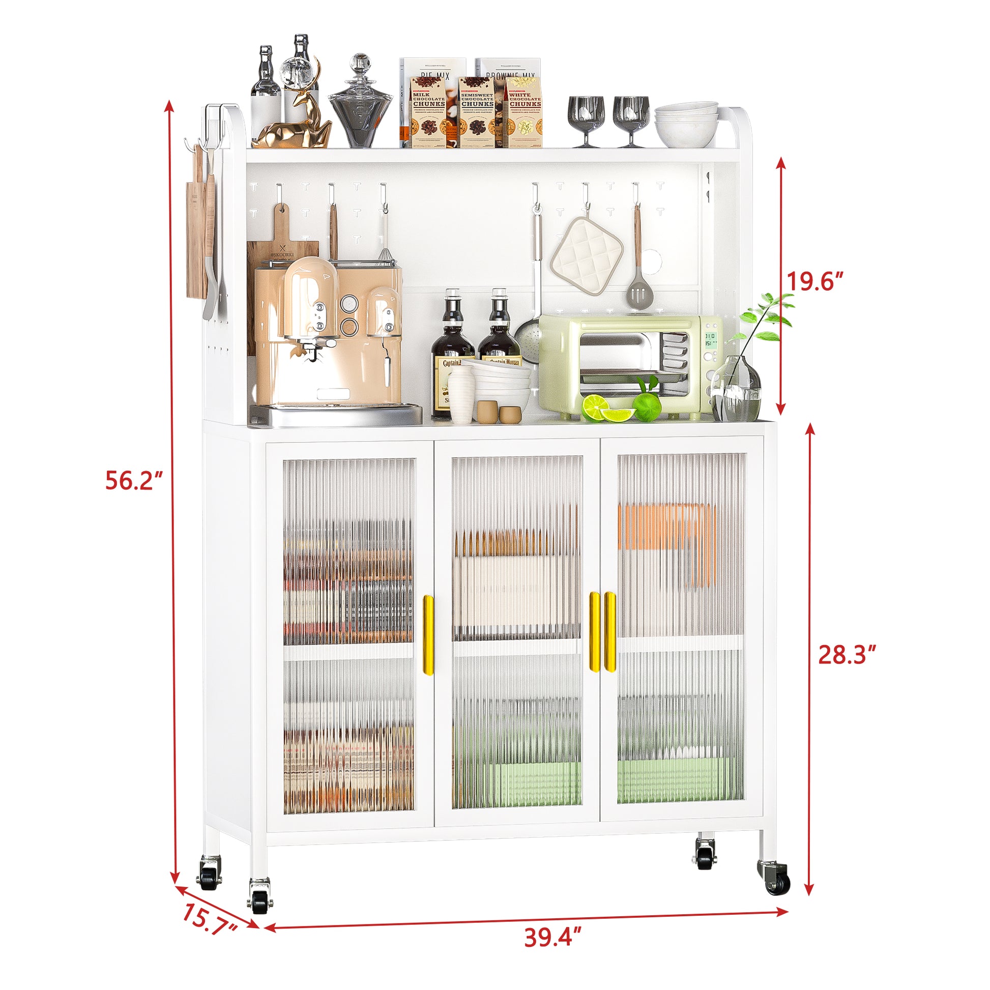 Carbon Steel Kitchen Storage Cabinets, Microwave Stand, Bakers Racks For Kitchens With Storage, Microwave Cart, Transparent Flap Door Design Kitchen Storage Shelves Free Screws 4 Tiers White White Metal