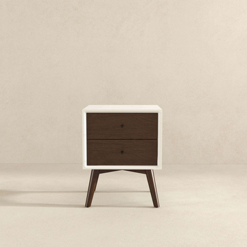 Caroline Mid Century Modern Style White Night Stand 2 Drawer Dark Brown,White Brown 2 Drawers Bedroom With Legs Mid Century Modern Solid Wood Walnut Solid Wood
