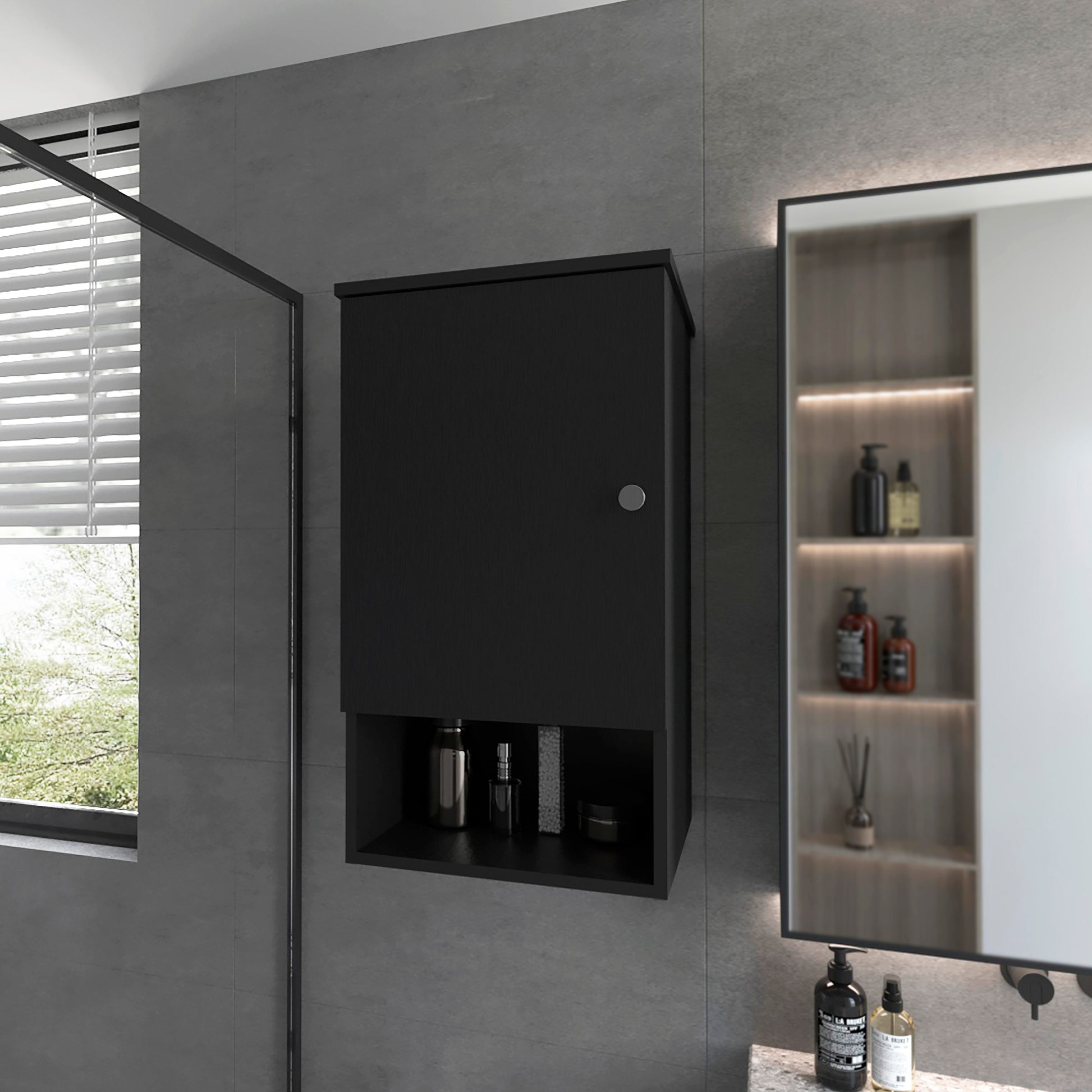 Carrizo Medicine Cabinet In Melamine With One Door, Black Black 1 3 24 To 31 In Bathroom Wall Mounted Minimalist,Modern 10 15 Inches Particle Board Melamine