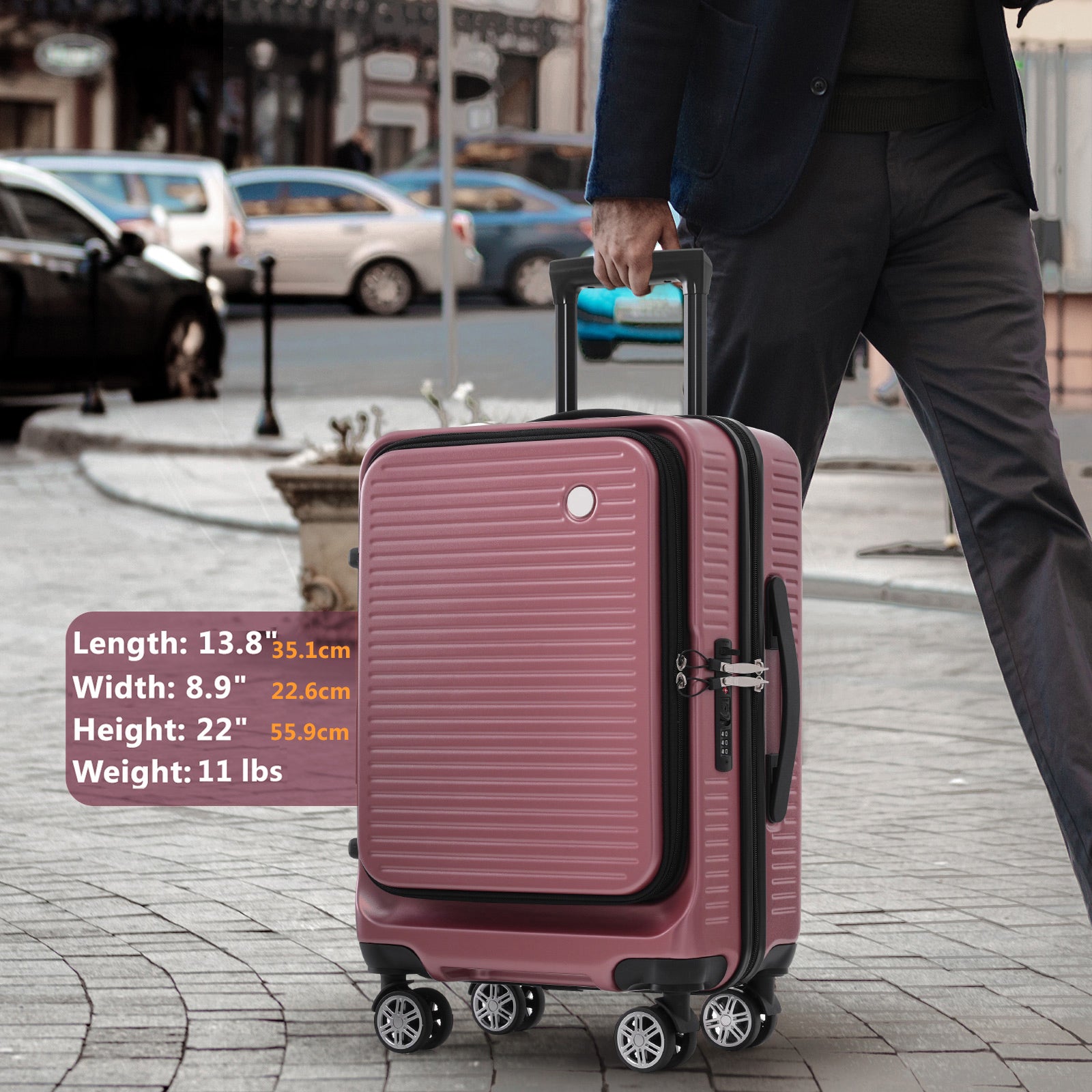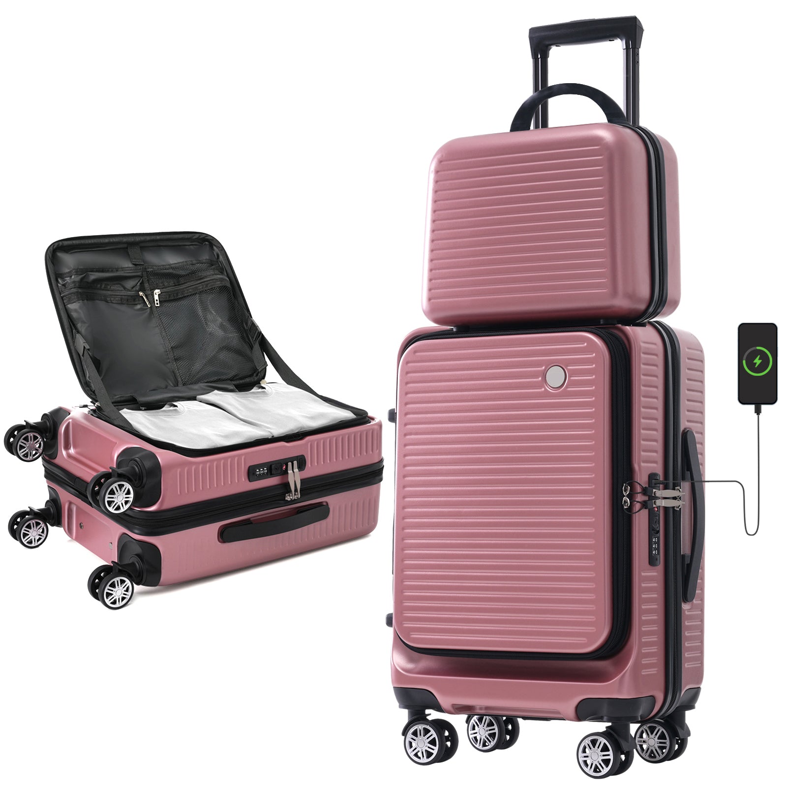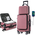 Carry On Luggage 20 Inch Front Open Luggage Lightweight Suitcase With Front Pocket And Usb Port, 1 Portable Carrying Case Rose Gold Abs