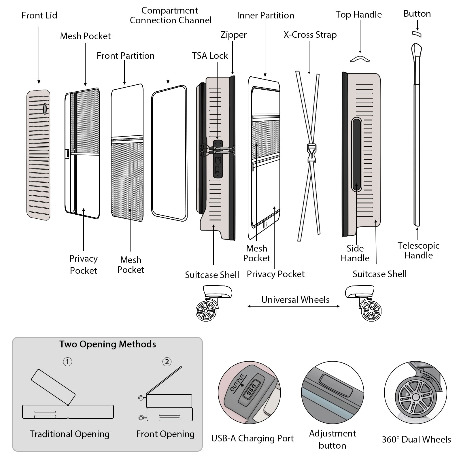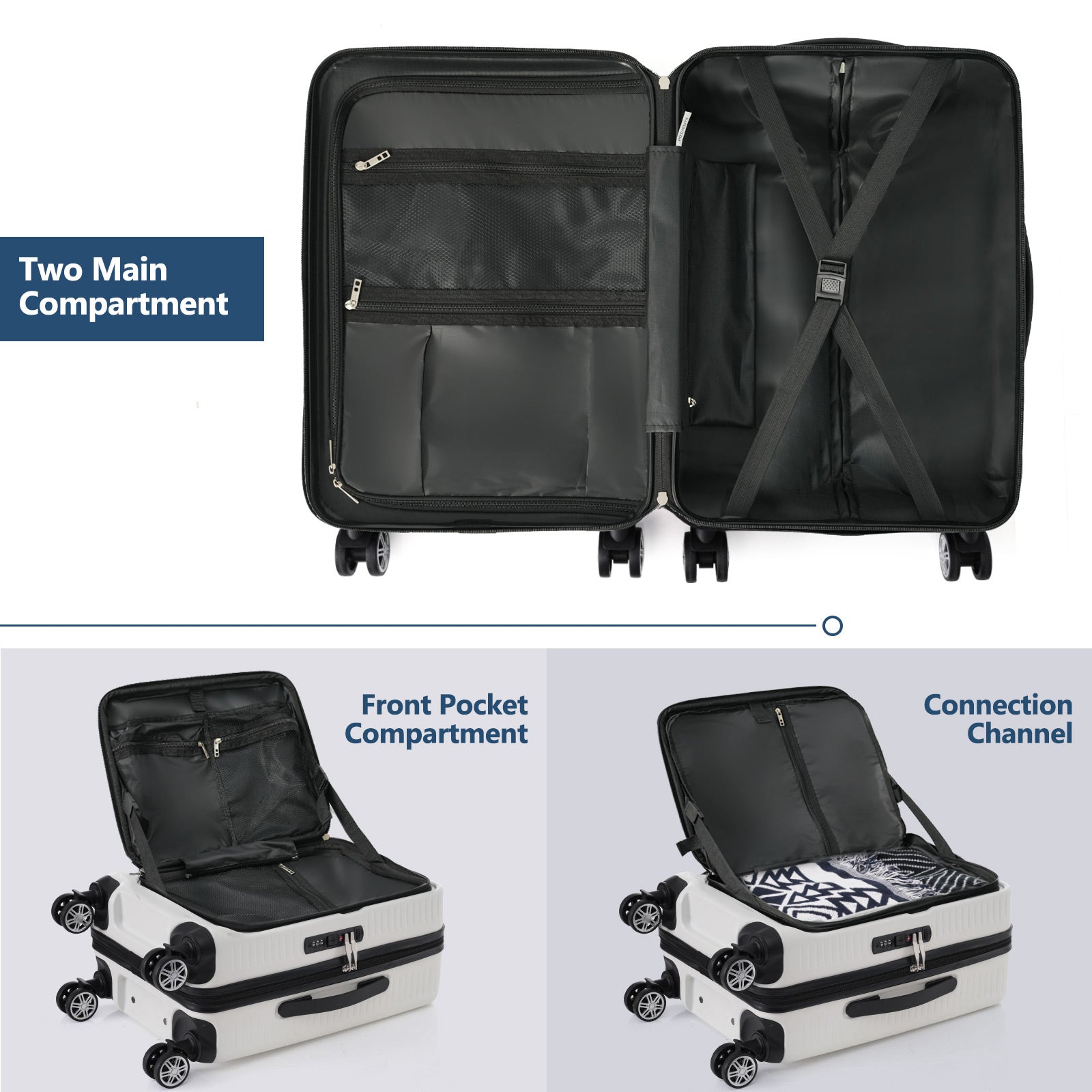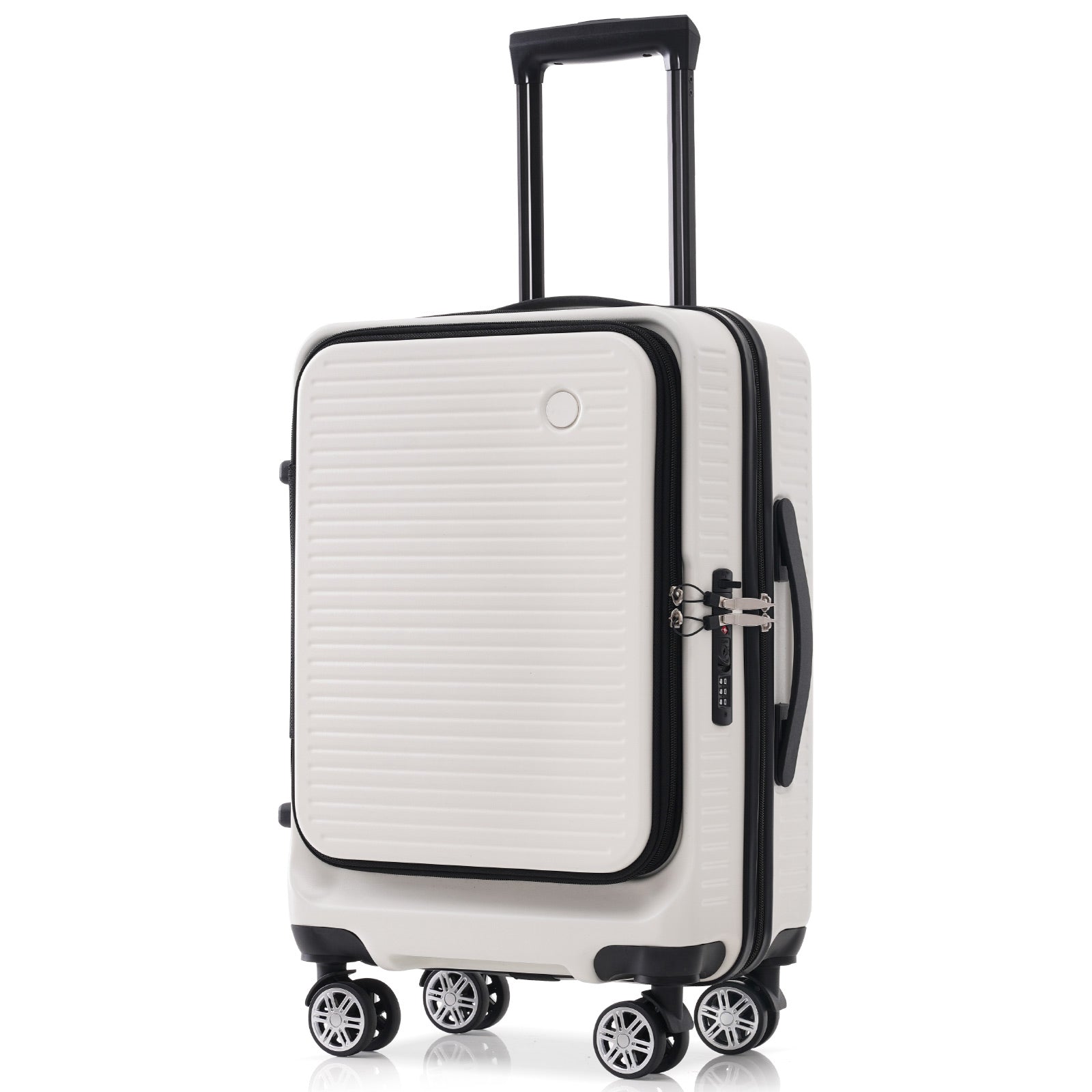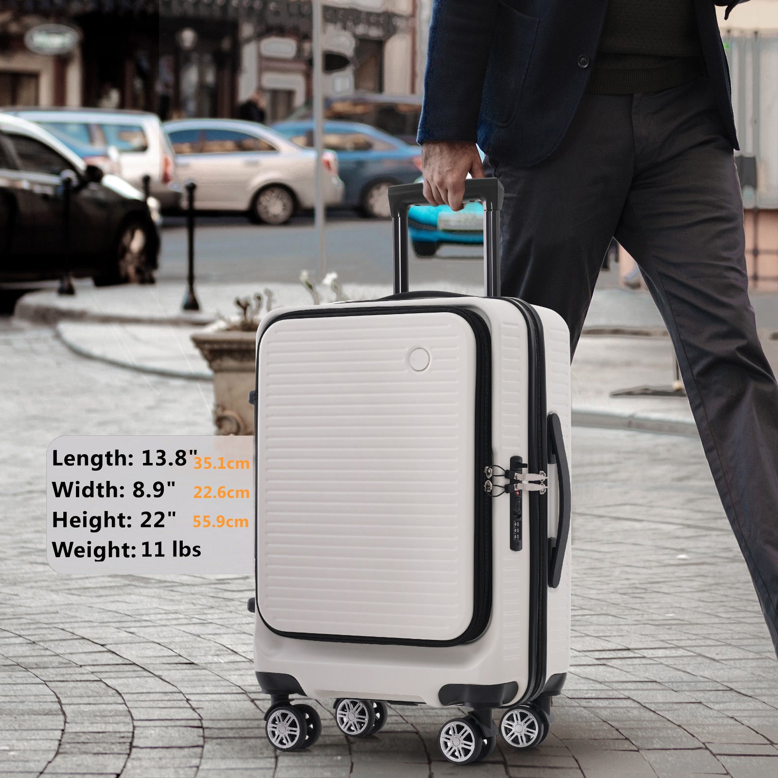 Carry On Luggage 20 Inch Front Open Luggage Lightweight Suitcase With Front Pocket And Usb Port, 1 Portable Carrying Case White Abs