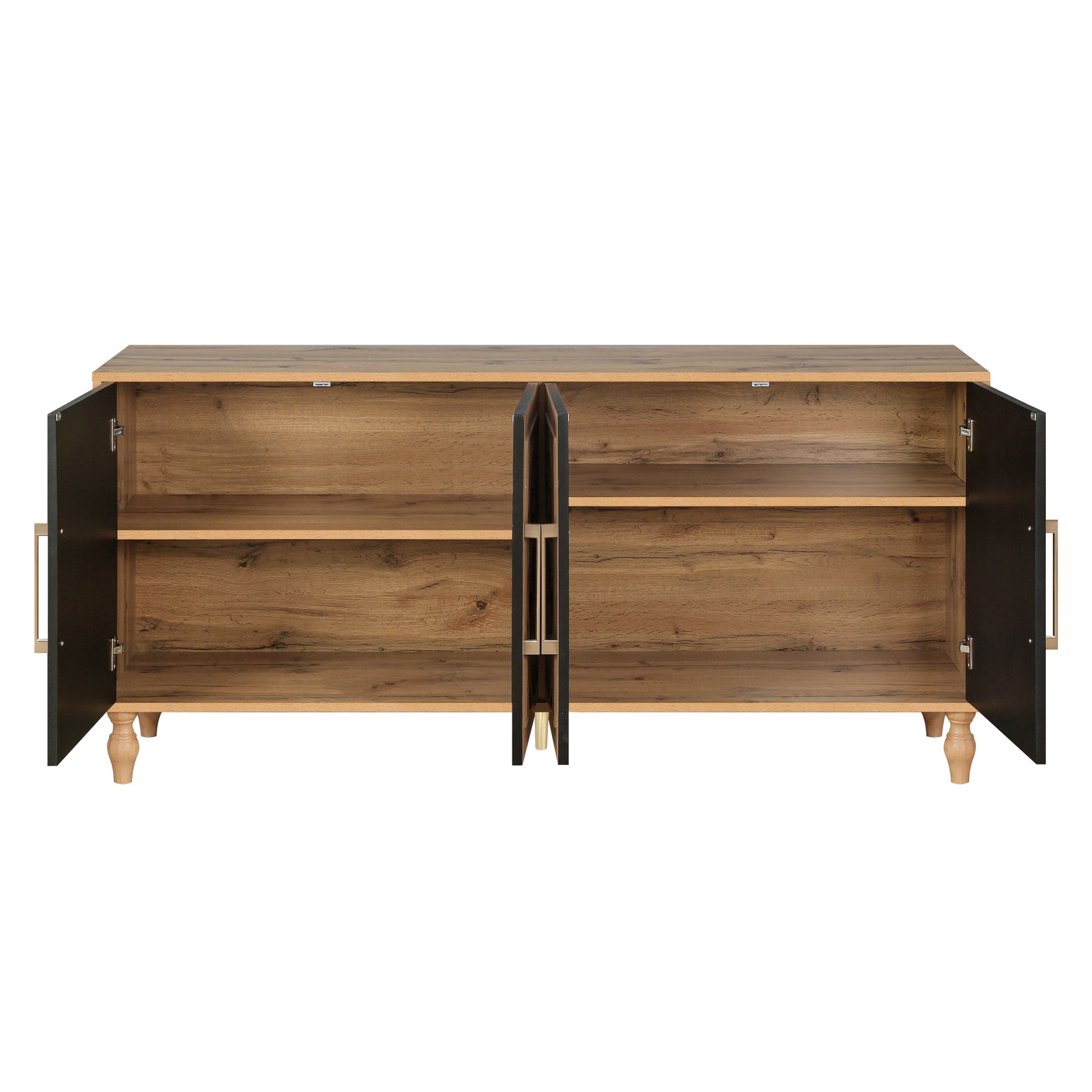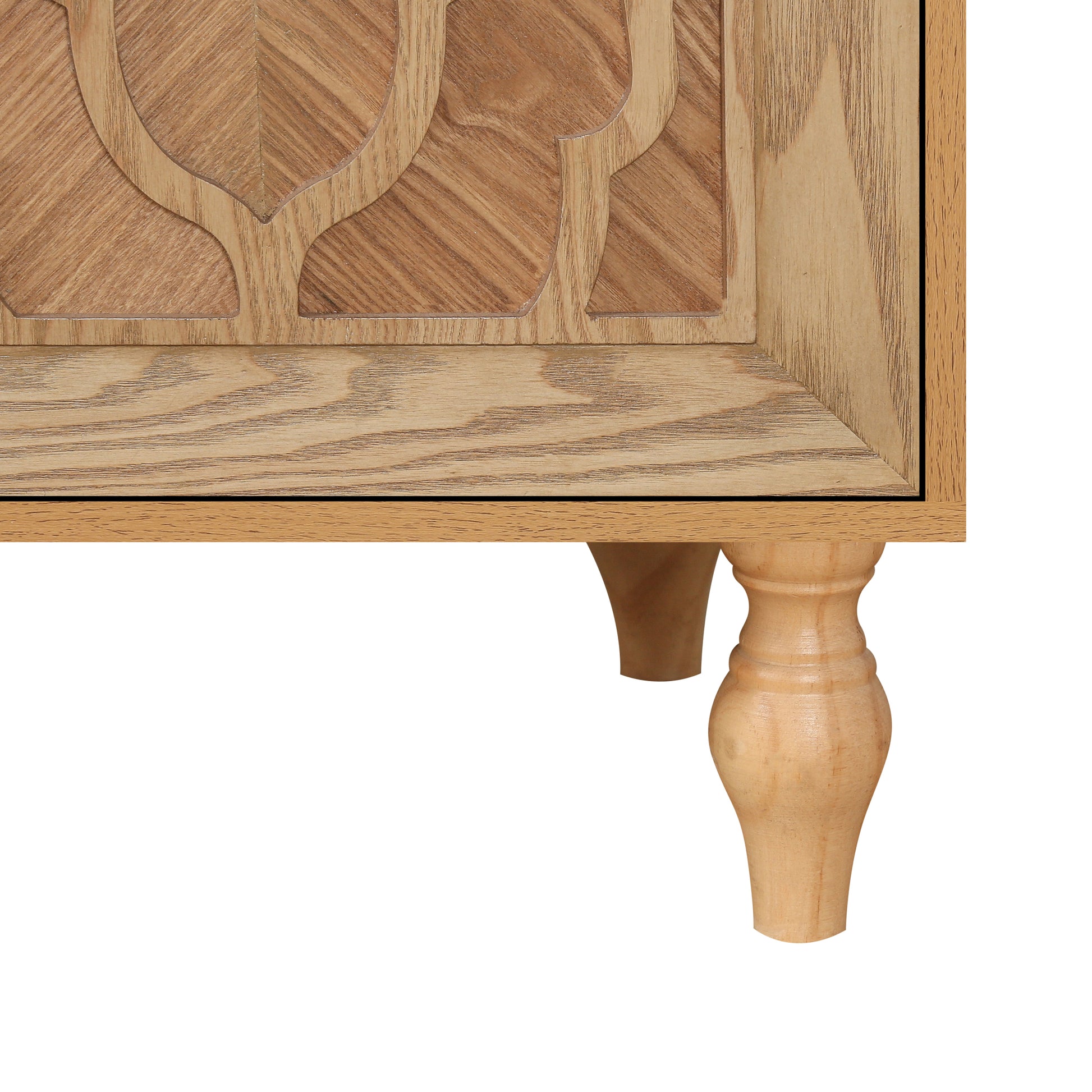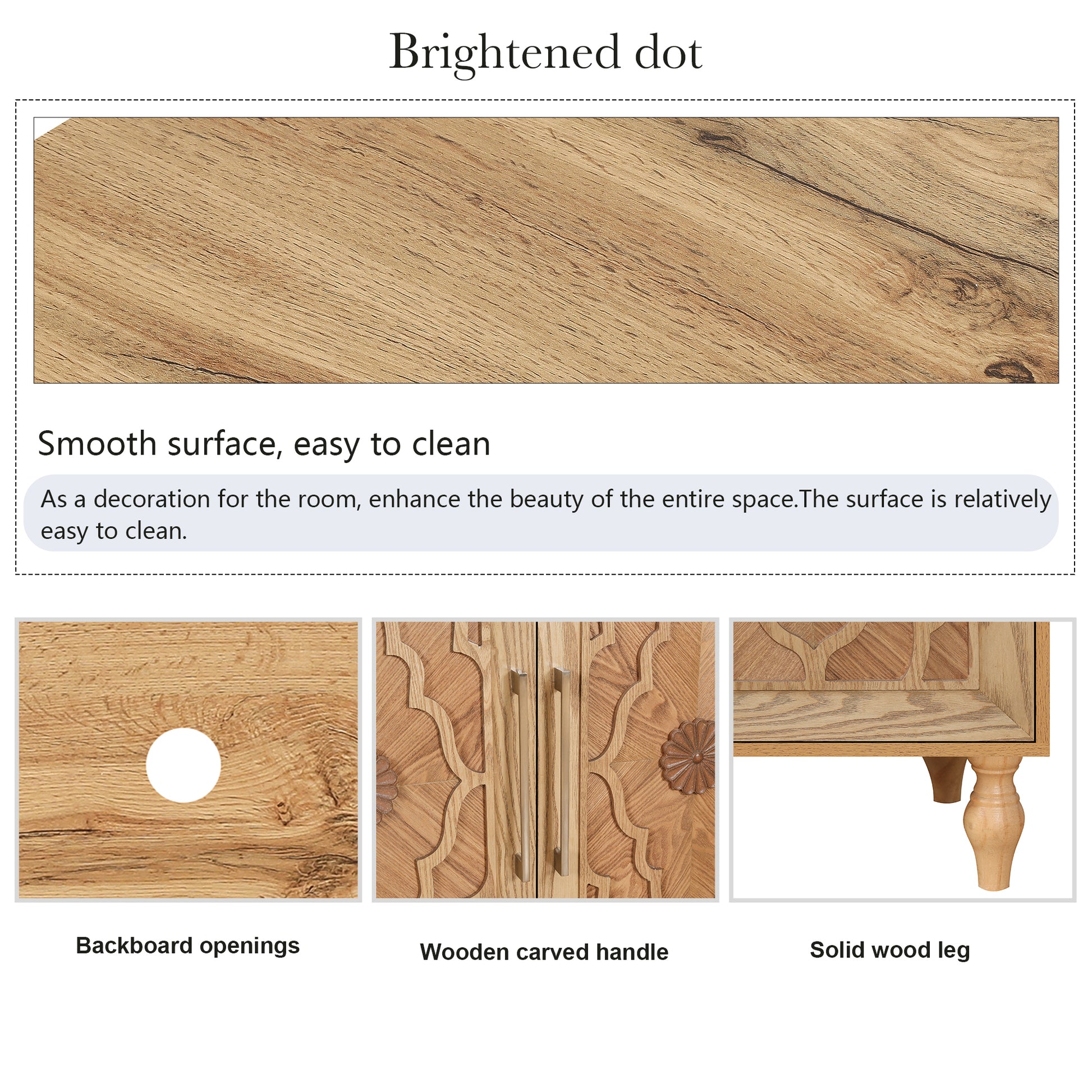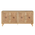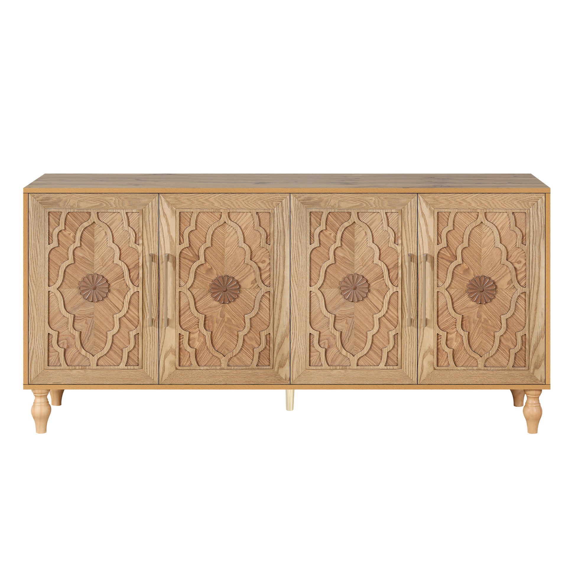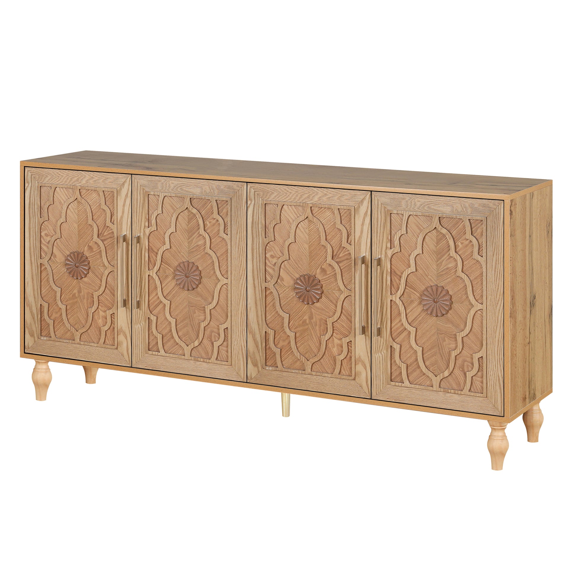 Carved Flower Door Large Storage Cabinet With Metal Handle Suitable For Living Room, Kitchen, Entryway Natural Wood Natural Wood Primary Living Space Mdf