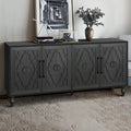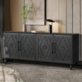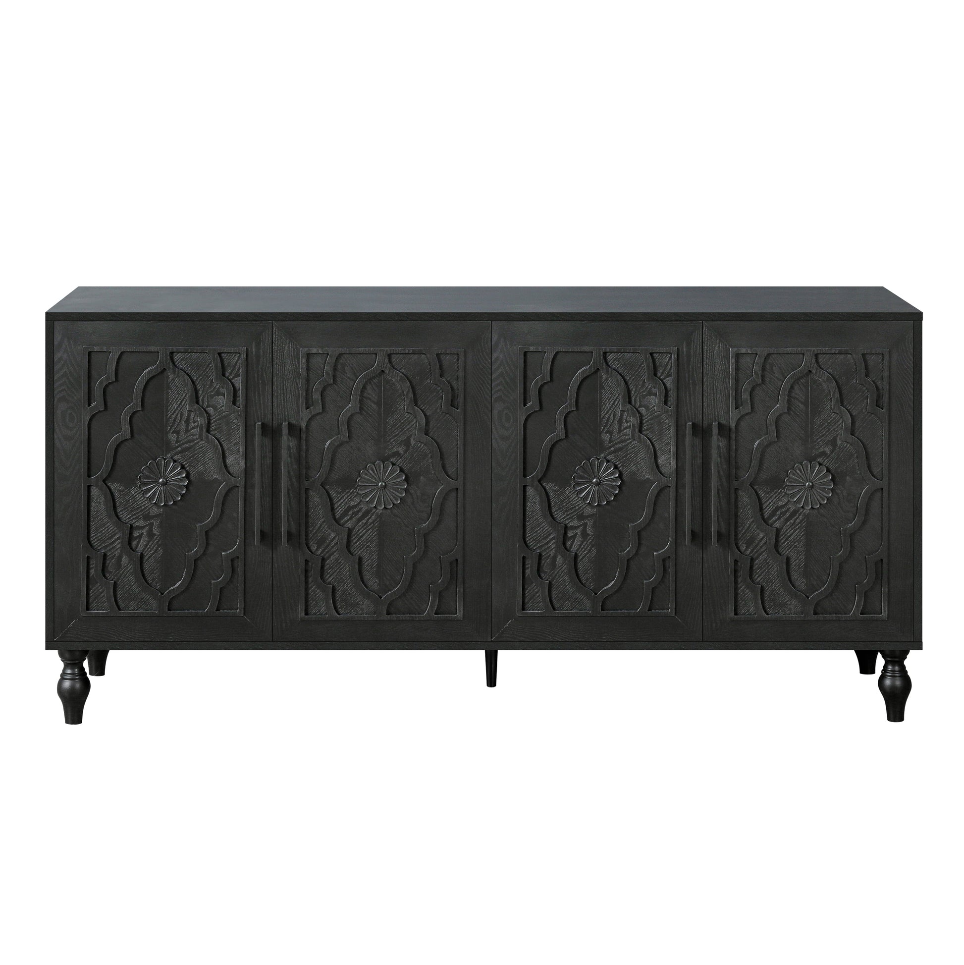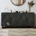 Carved Flower Door Large Storage Cabinet With Metal Handle Suitable For Living Room, Kitchen, Entryway Black Black Primary Living Space Mdf