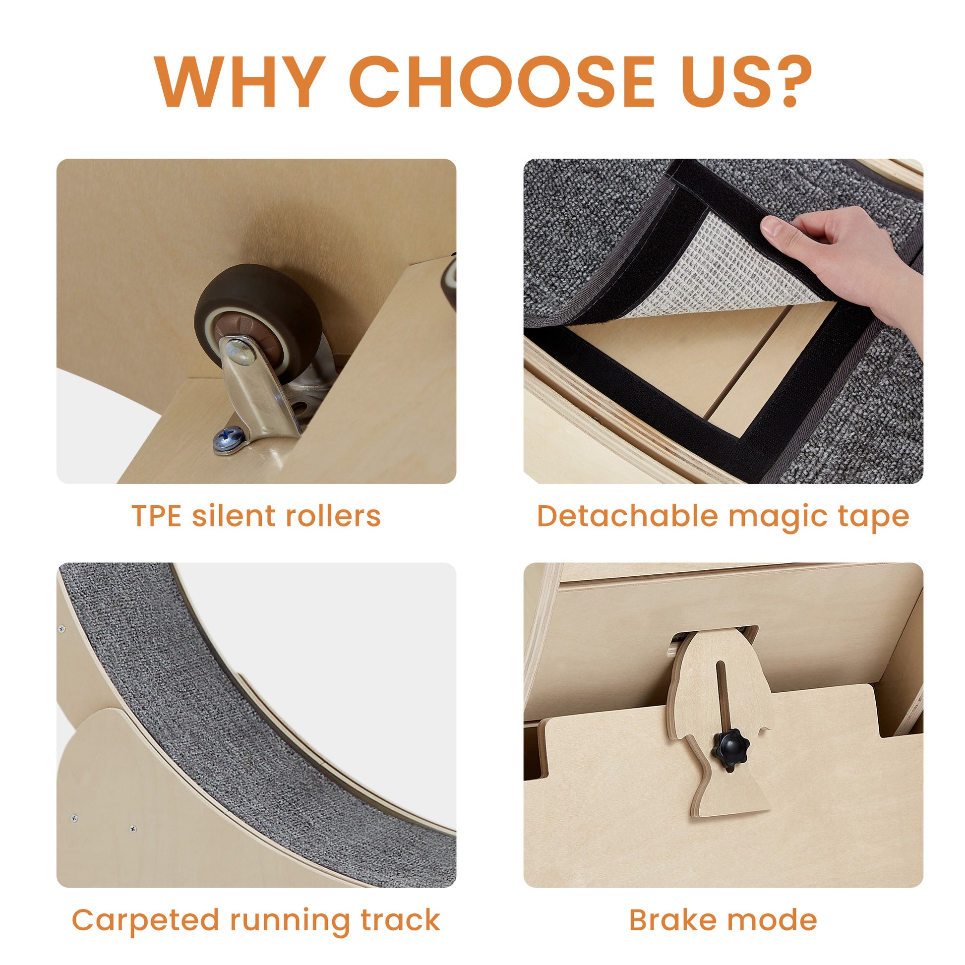 Cat Exercise Wheel Indoor Cat Treadmill With Carpeted Running Track, Safety Cat Treadmill With Latch, Weighted Wheel For Cats, Add Fun To Cat Exercise, Natural Wood Color,43.3"L X 13.2"W X 45.9"H Natural Wood Solid Wood