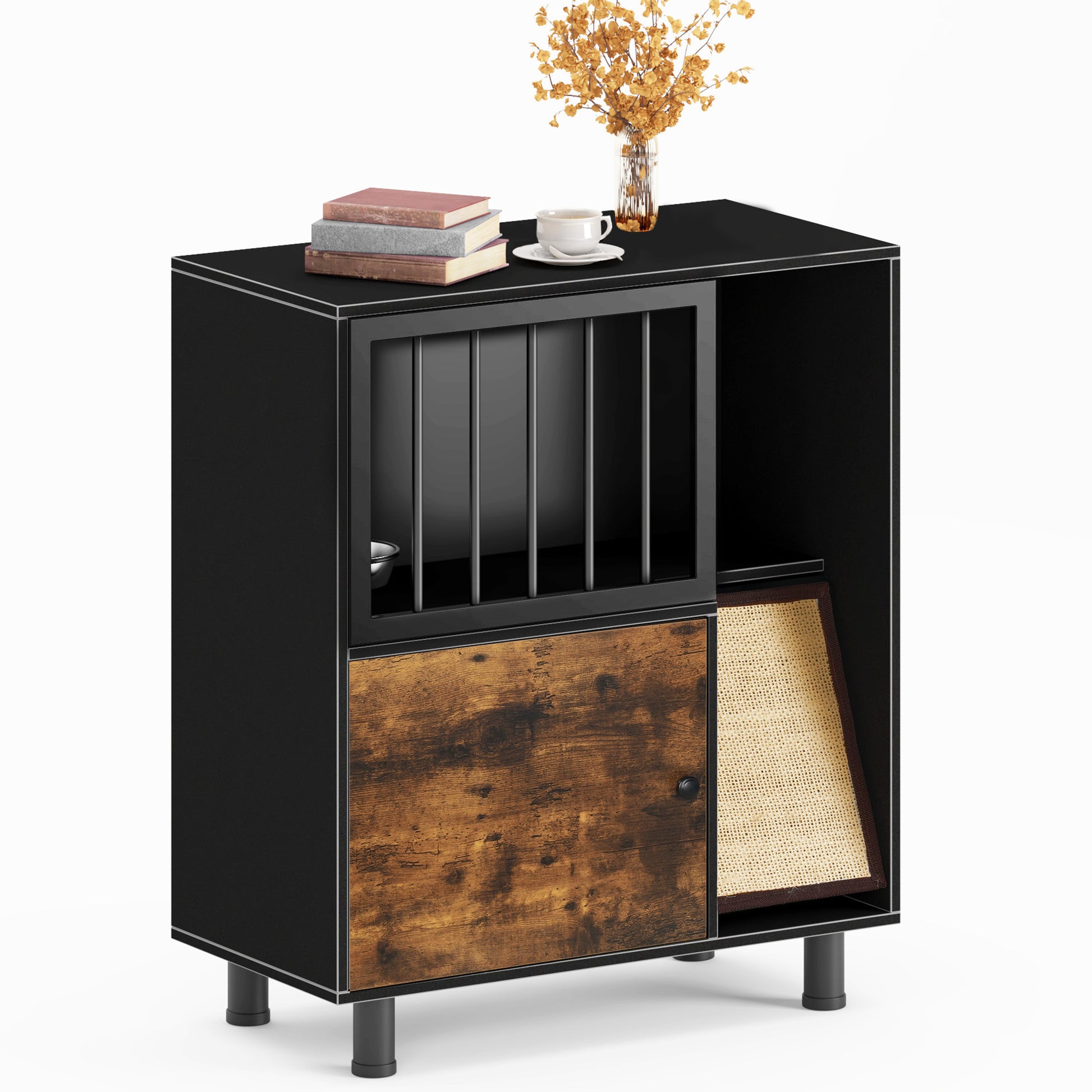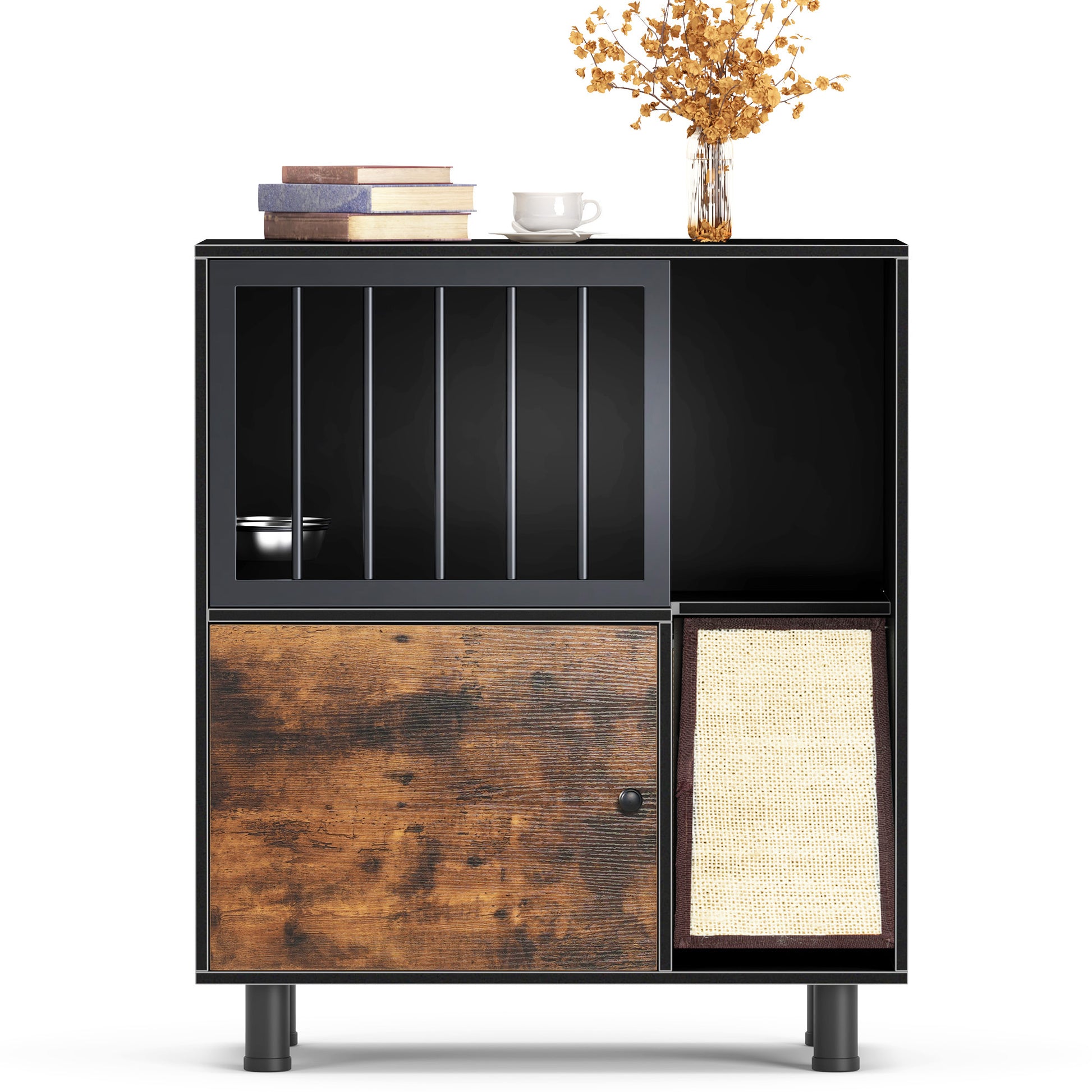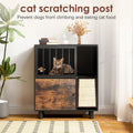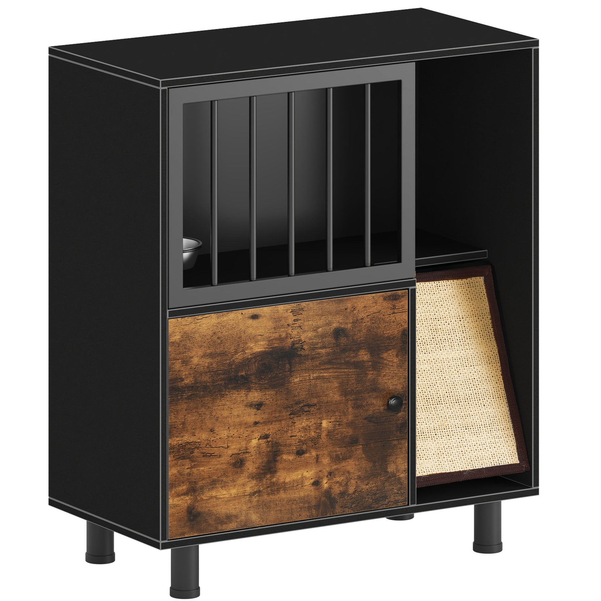 Cat Feeding Station, Feeding Station With Cat Scratching Board, Cat Locker With Storage, Black Vintage Color Black Vintage Particle Board